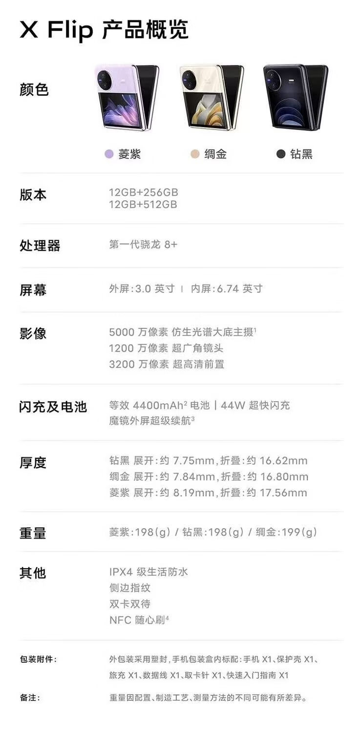 vivoX Flip 悬停蔡司影像 骁龙8+芯片 44W闪充 魔镜大外屏 轻巧优雅设计 5G折叠屏手机 菱紫 12GB+256GB 官方标配+原封未激活+全国联保