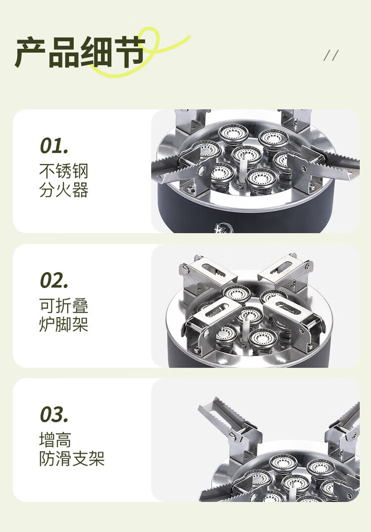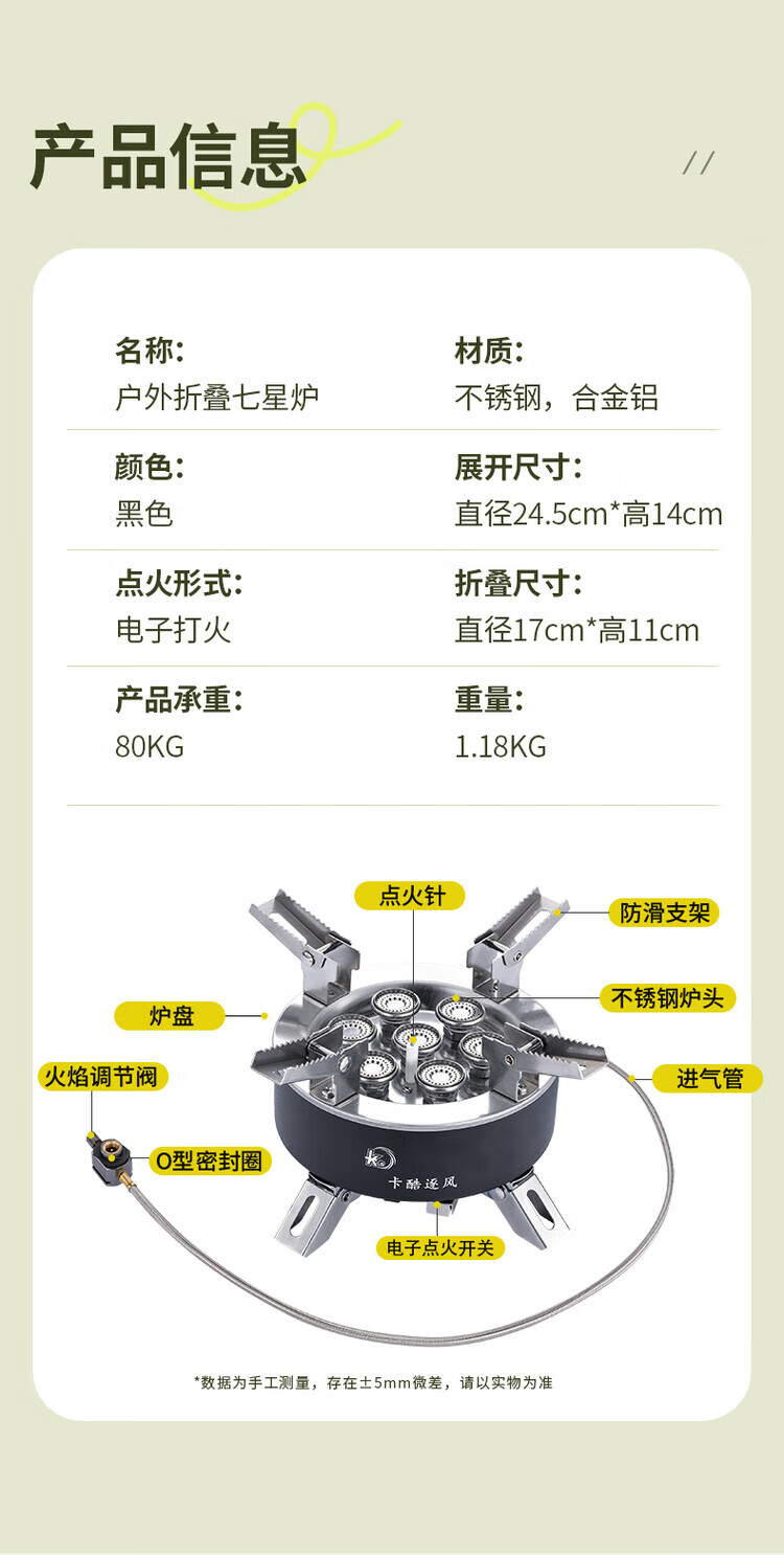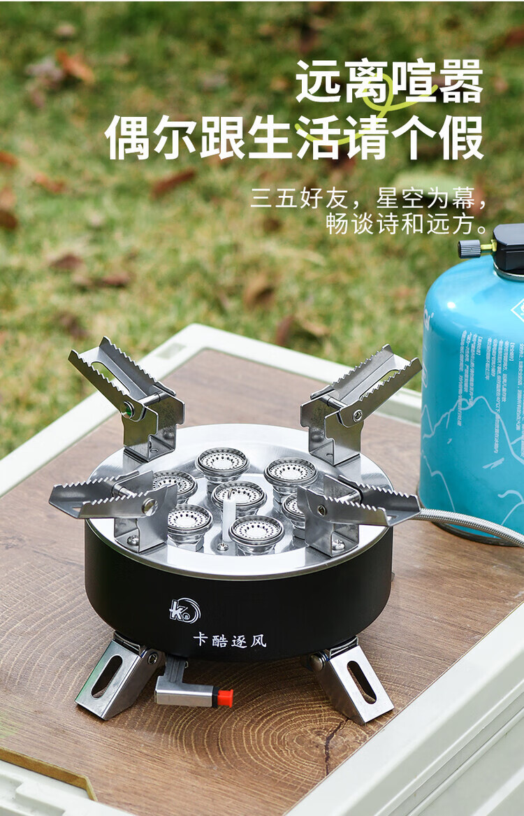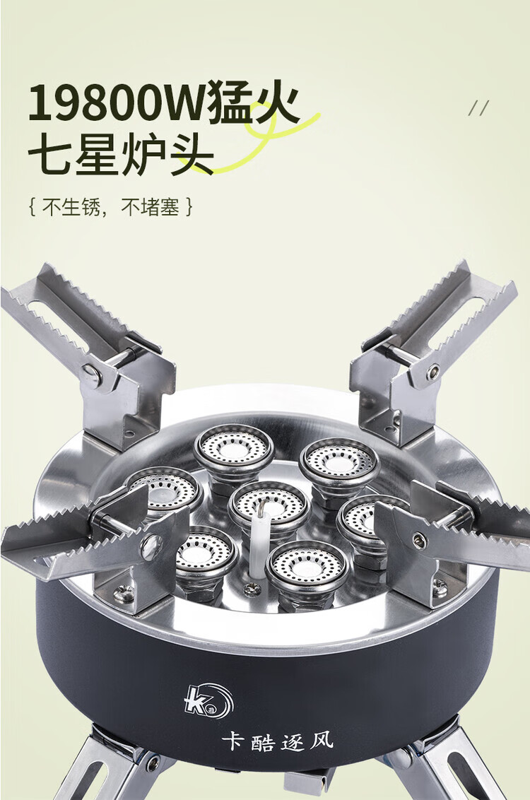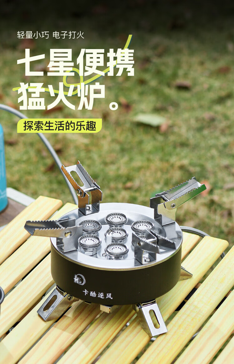 卡酷逐风户外七星炉高山炉头露营卡式炉超强猛火燃气煤气灶便携式野营户外 七星炉+挡风板+卡式气罐转接头