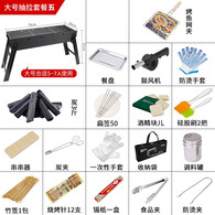 杰米仕 烧烤架户外烧烤炉折叠抽拉木炭槽家用3-10人碳烤肉架子 大号抽拉+不锈钢网+18件套+3斤炭