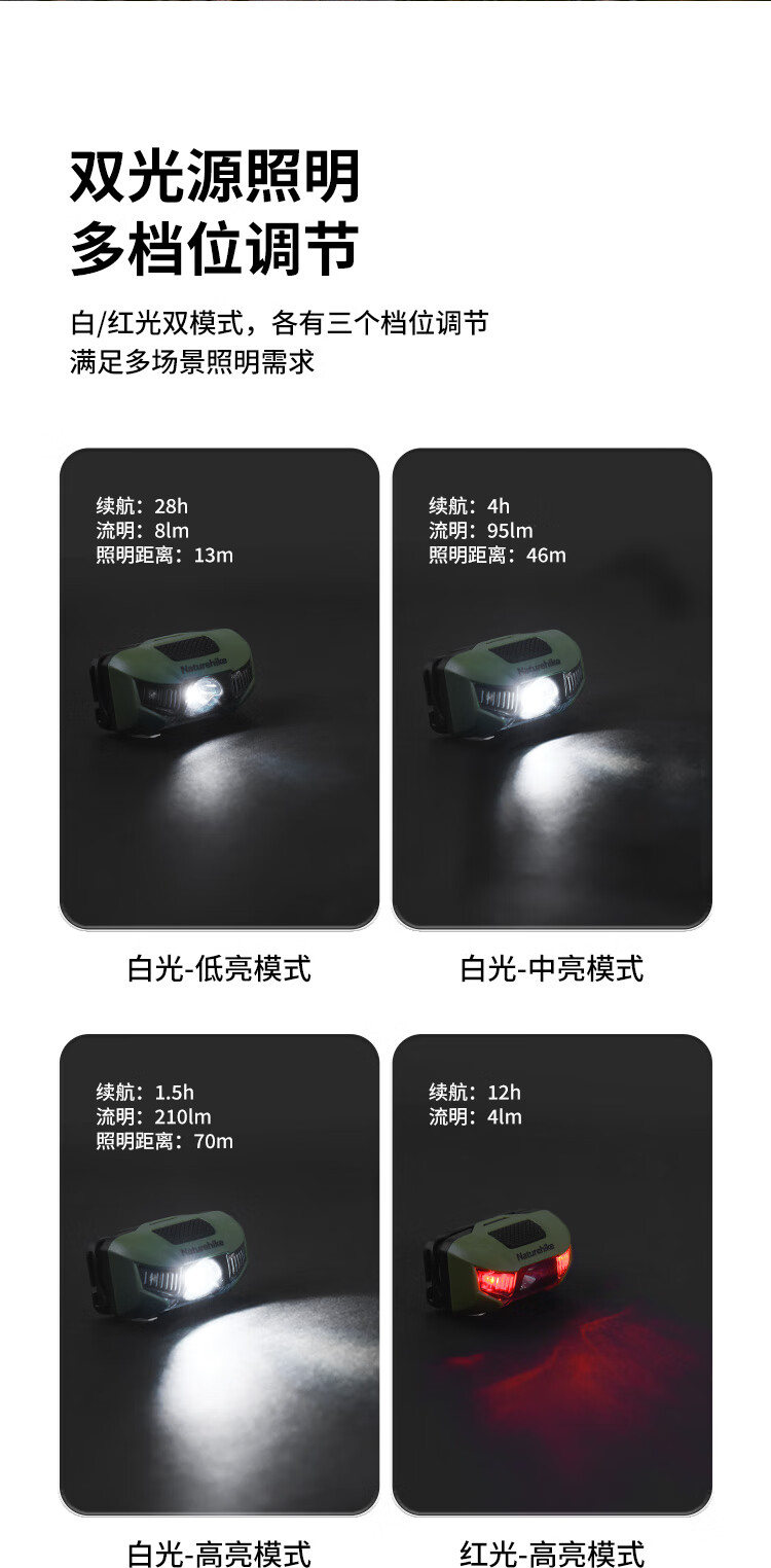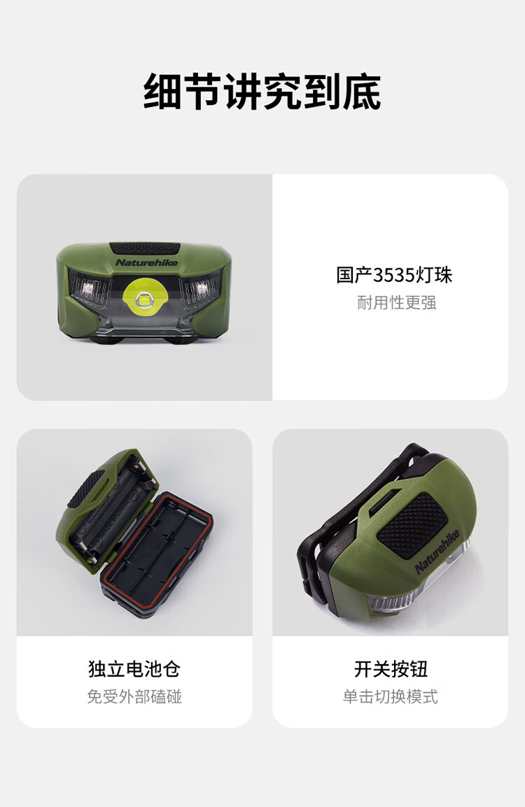 NatureHike挪客8级防水头灯强光超亮便携户外徒步登山照明灯夜钓灯头戴式 苔藓绿【CERR耐用灯珠】