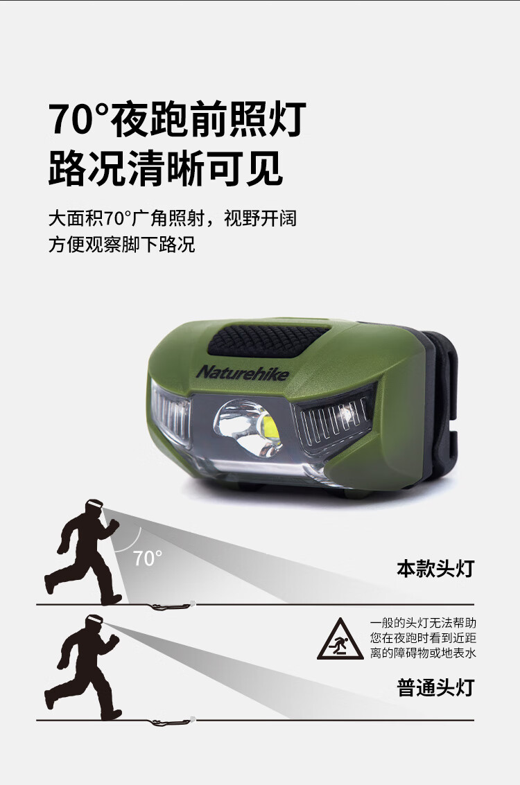 NatureHike挪客头灯户外夜跑强光超亮照明灯野外登山徒步超轻防水应急夜钓灯 苔藓绿