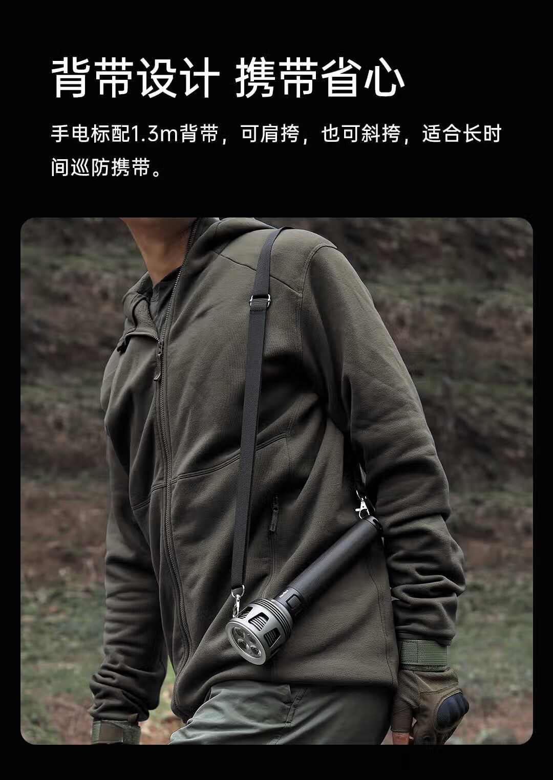 这个手电筒非常不错,亮度也比较够,四个灯珠。然后拿起来也非常有质感,只不过他在穿他的背带的时候,那个小铁圈会磨到整个的旋转的那个金属圈。这个需要注意一下,后面还是要改进的。