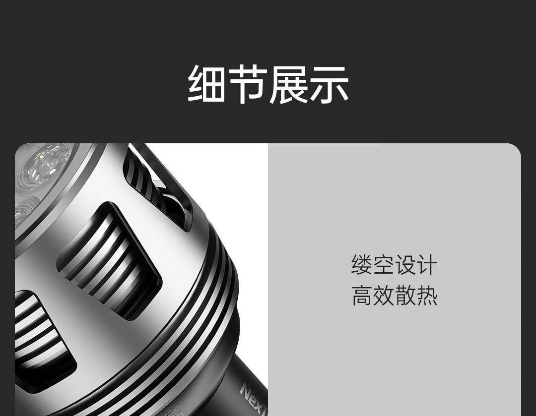 • 纳拓(NexTool) 雷霆户外强光手电防水超大电容量远射应急手电筒3600流明 黑色