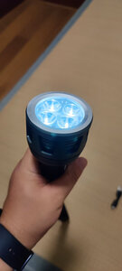 送给老爸的礼物 和以往用的手电筒不是同一个量级的,这个亮度基本可以达到一只汽车led大灯了。 外壳做的非常好,看着像阳极氧化工艺,手电筒非常有分量,表面做的磨砂处理,充电口旋转的地方有防尘防水的胶圈。 整个手电筒可以水洗。 总的来说虽然很贵,但是以前没见过把手电筒能做到这个级别的。