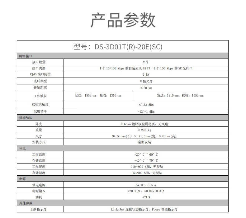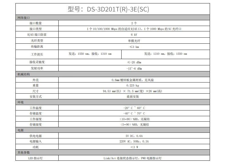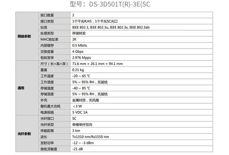 海康威视千兆单模单纤光纤收发器 DS-3D501T-3E(SC)