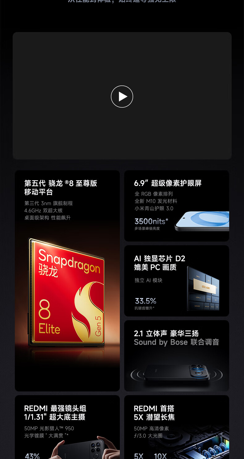 小米红米K90Promax/K90【24期免息】5G手机 骁龙®8至尊版 REDMI 5000万像素 5X潜望长焦 Bose调音 黑色 12+512GB【K90】 官方标配【赠2年店铺延保+90天碎屏保】