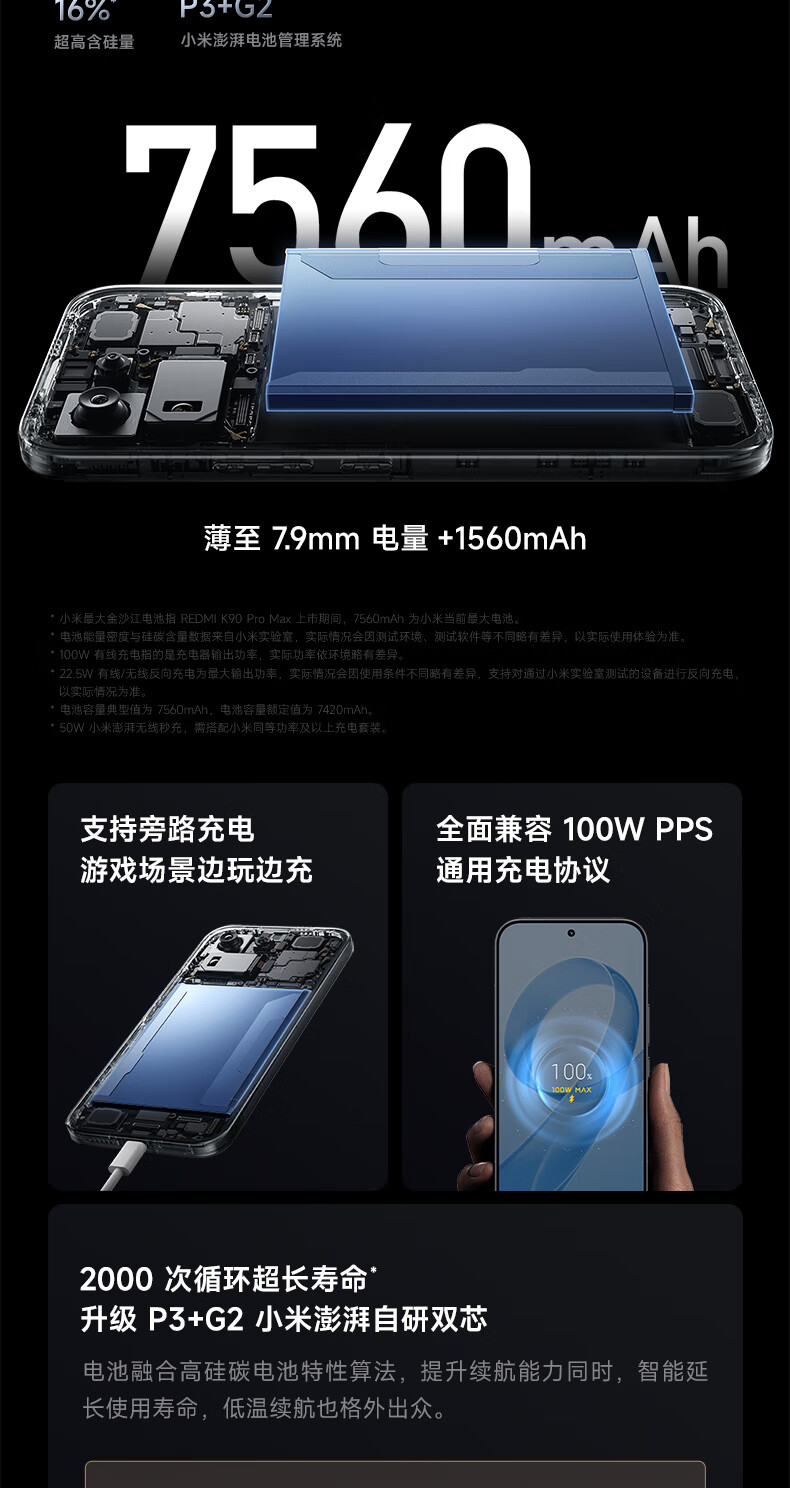 小米(MI)红米 REDMI K90 Pro Max 第五代骁龙8至尊版 7560mAh大电池 BOSE联合调音新品红米5G音乐游戏手机 丹宁色 12+512GB 官方标配