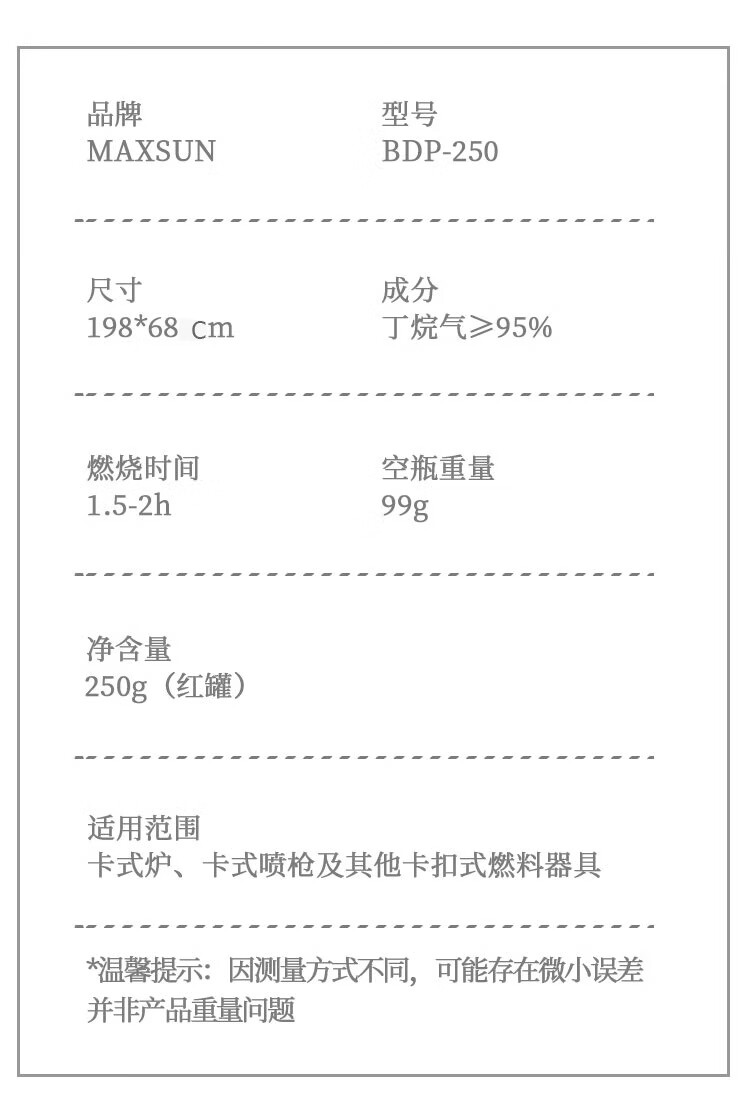 这款气罐真的是经典中的经典,麦仙的气罐就不用多说了,大罐更耐用,一次带个2罐就足够用个12 天了,非常不错的一款气罐,不用担心,火质多,也不用担心火力不足。认准脉鲜准没错