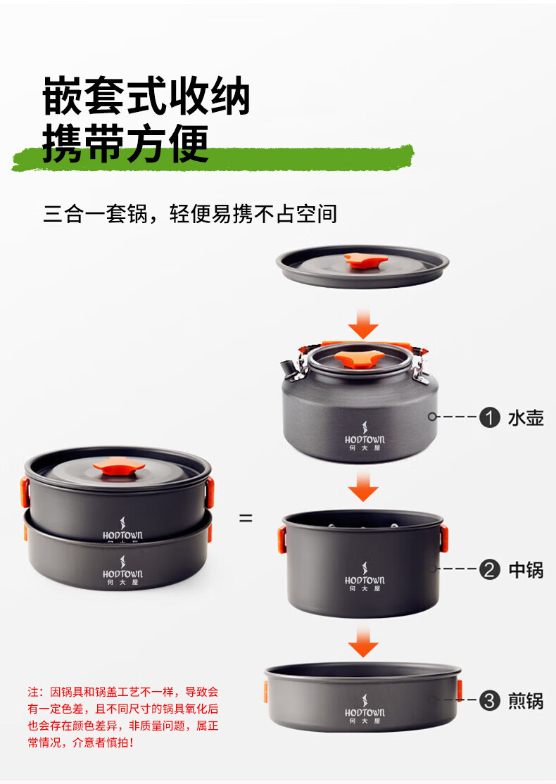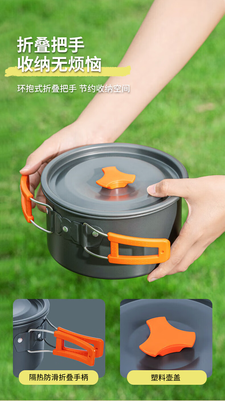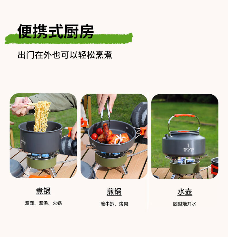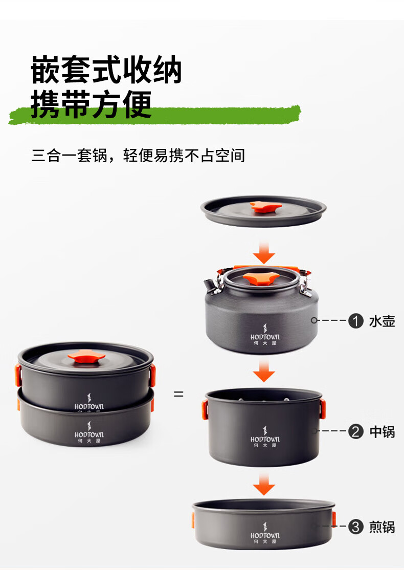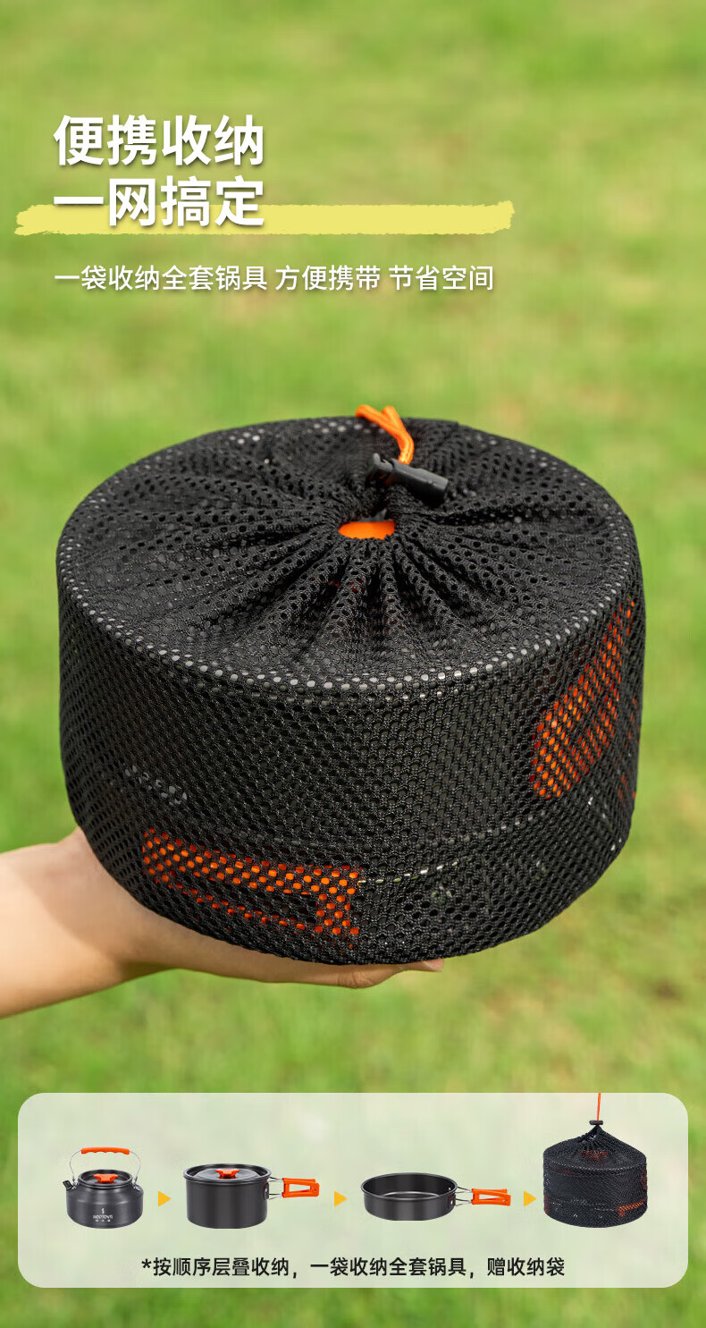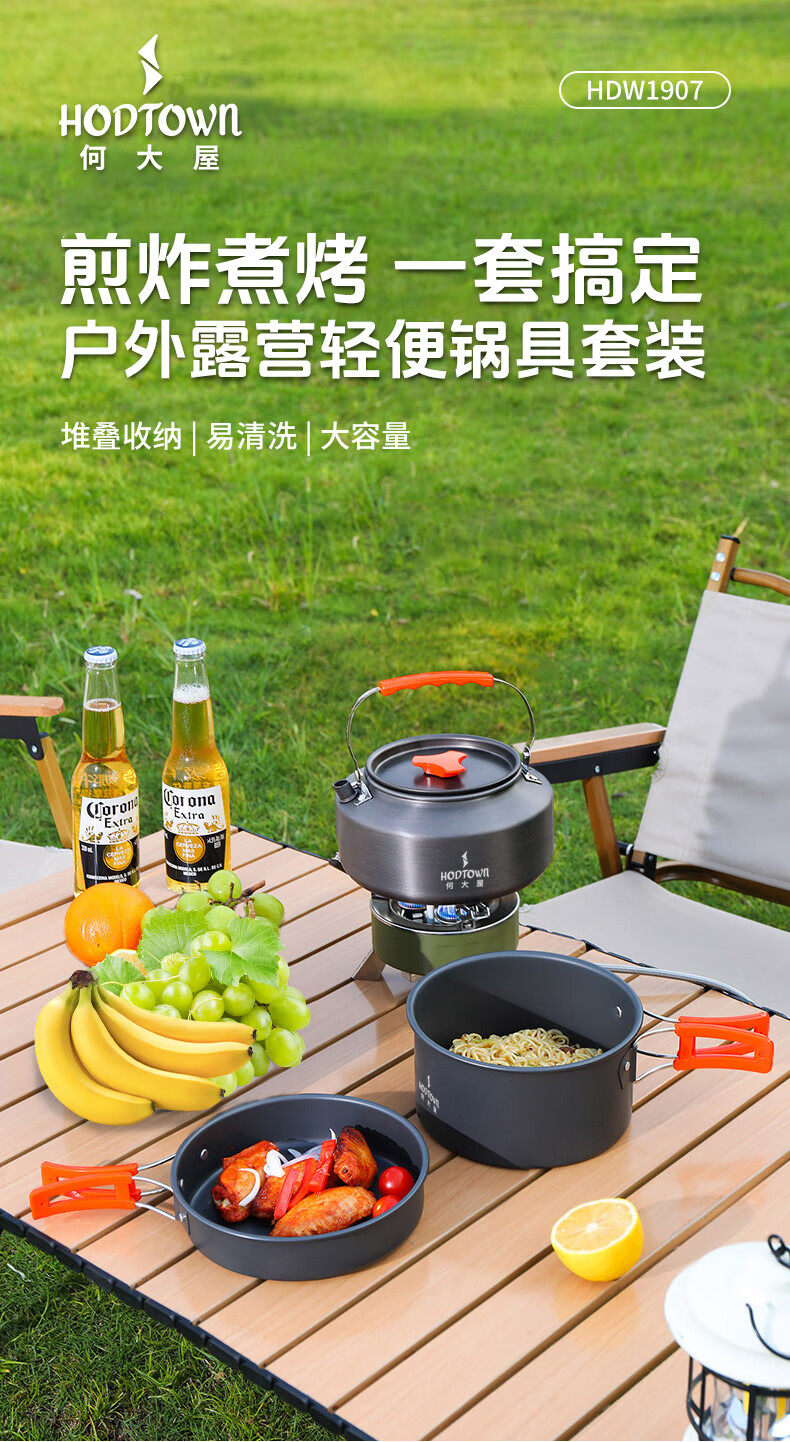 何大屋(Hodtown)多人户外套锅便携折叠收纳露营装备用品野餐炊具烧水套装野营餐具 户外露营轻便锅具套装HDW1907