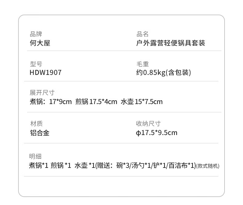 户外露营轻便锅具套装-HDW1907