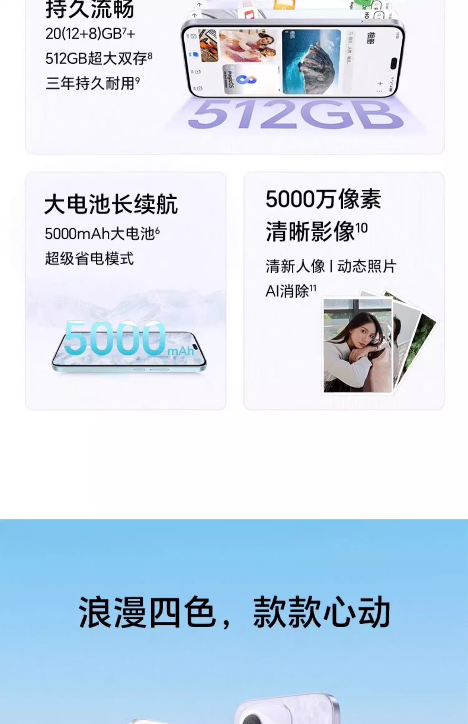 华为(HUAWEI)Huawei/华为 畅享50通老人学生备用机大容量电池智能手机 贝母白 8GB+256GB