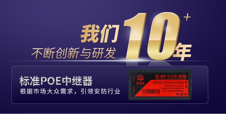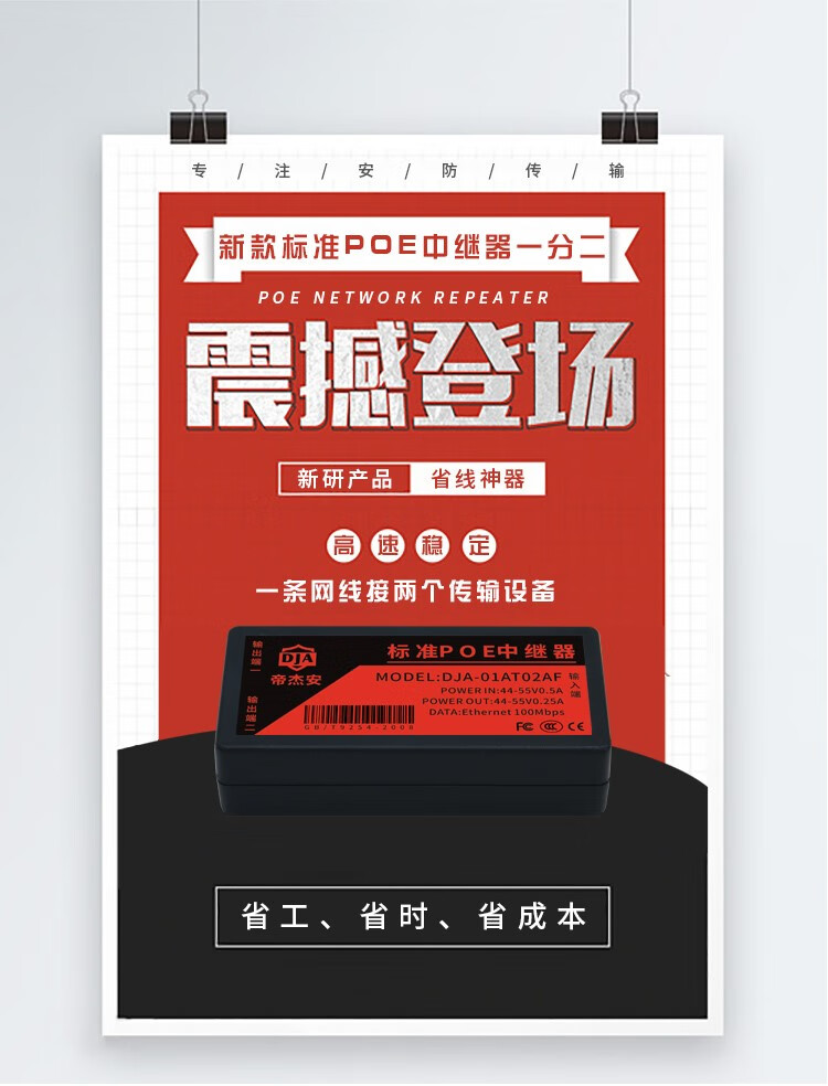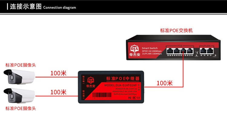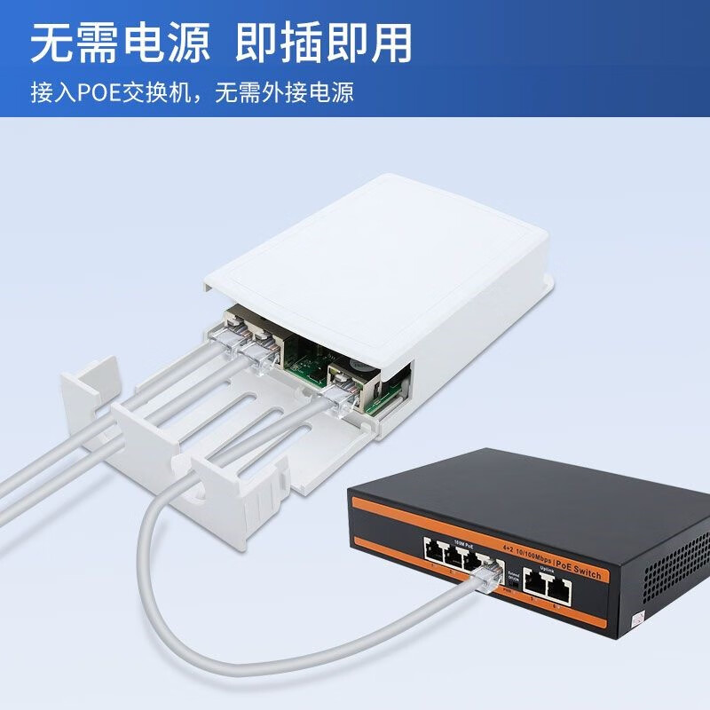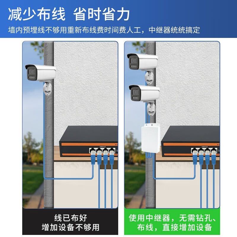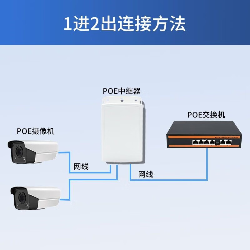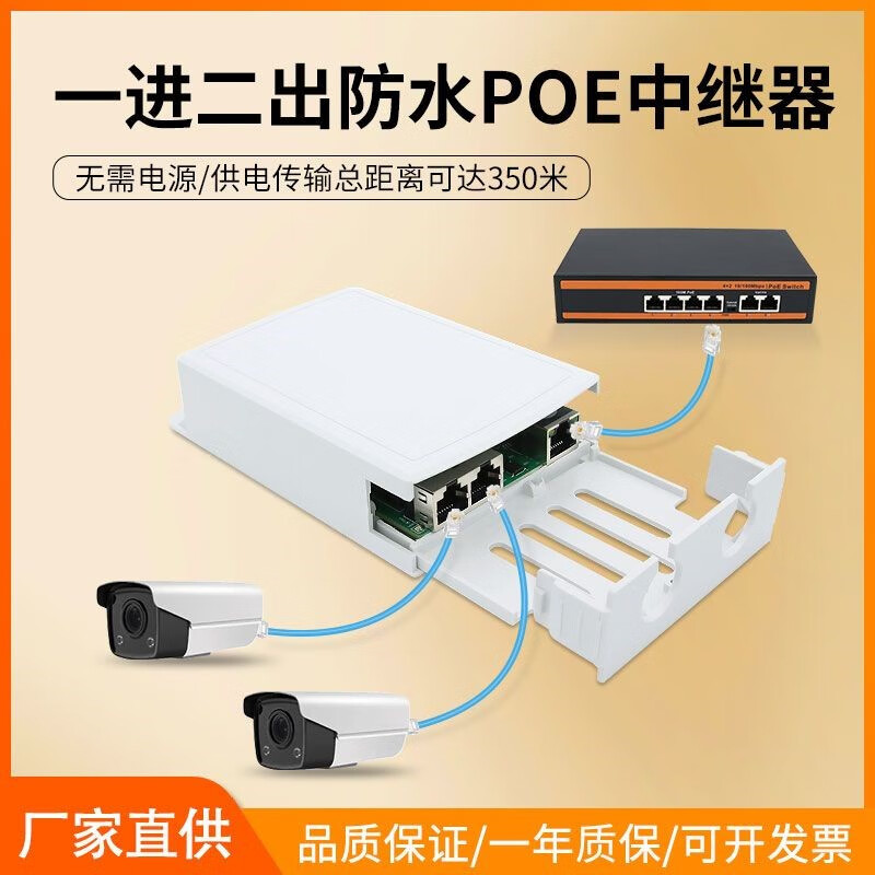 海康威视原装标准POE中继器一分二/一进三出 百兆千兆网络延长器 防水POE供电 黑色标准百兆中继器