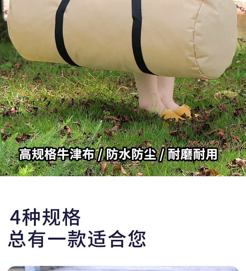 京逸户外大容量防水驮包露营野餐帐篷折叠桌椅收纳包蛋卷桌手提旅行包 【驮包】大号卡其色 (90*38*30cm