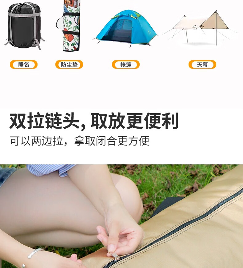 ZKHE超大防水露营收纳包户外旅行睡袋帐篷桌椅天幕圆筒袋野营装备袋子 耐磨特厚款-卡其直径19*72cm