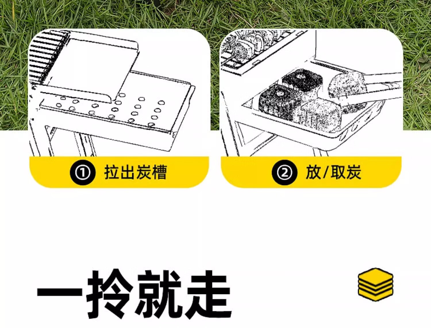 探险者烧烤炉户外烧烤炉露营野餐炉架家用便捷式折叠烧烤炉 全折叠烧烤架+烤盘+置物板+3斤炭