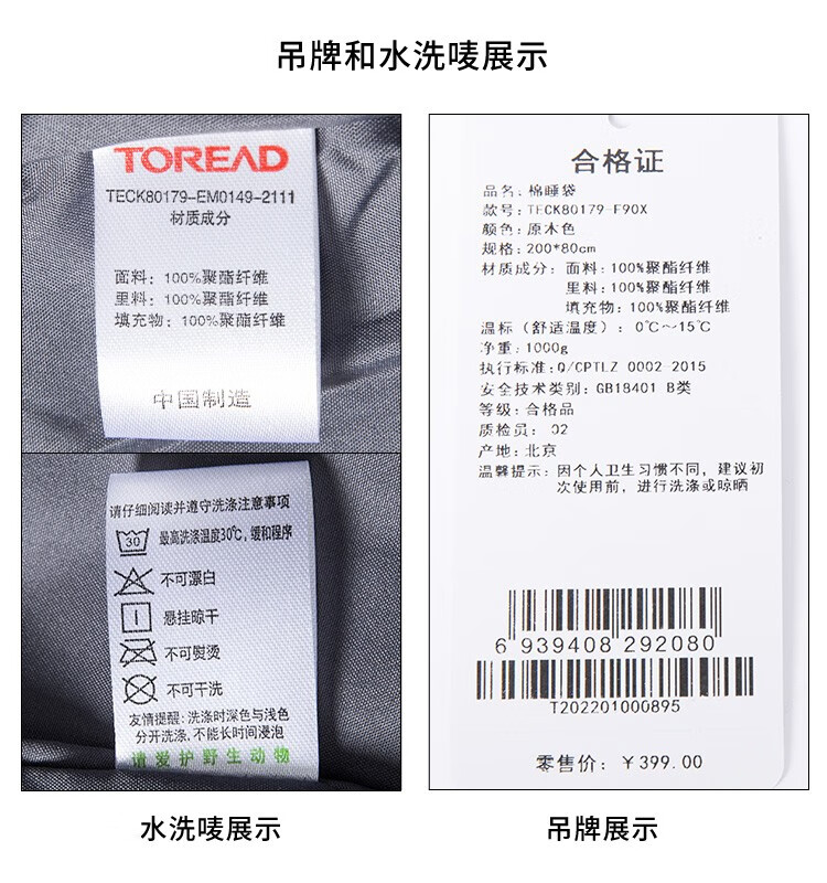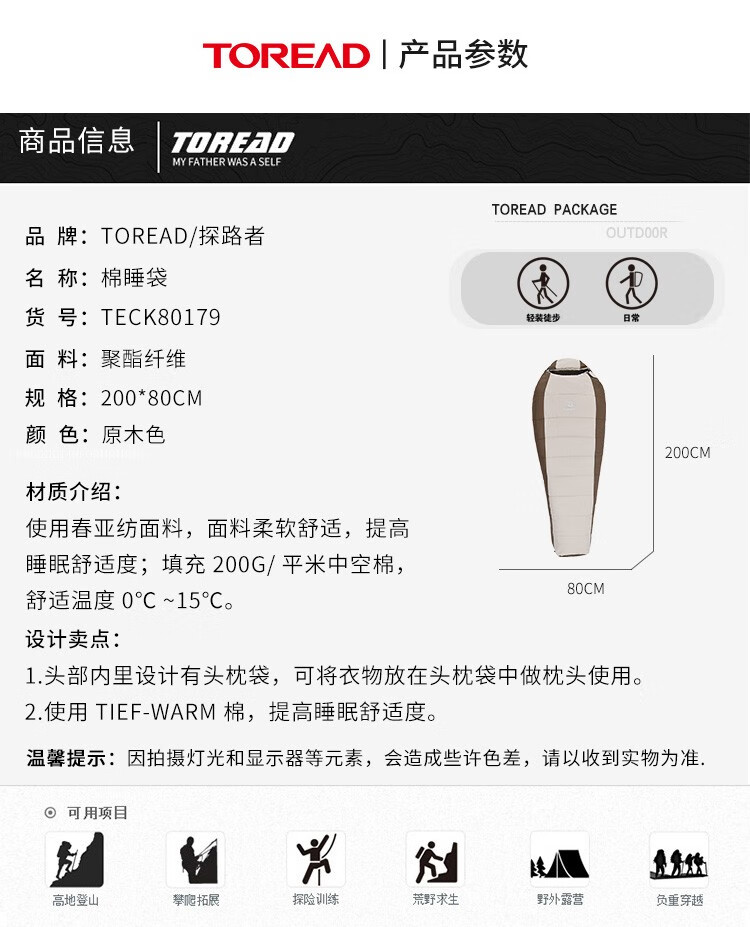 探路者(TOREAD) 棉睡袋 秋冬户外情侣通用 柔软舒适旅行棉睡袋 TECK80179 原木色
