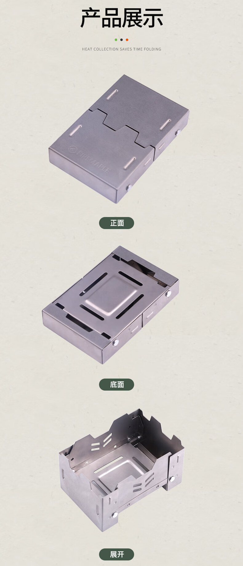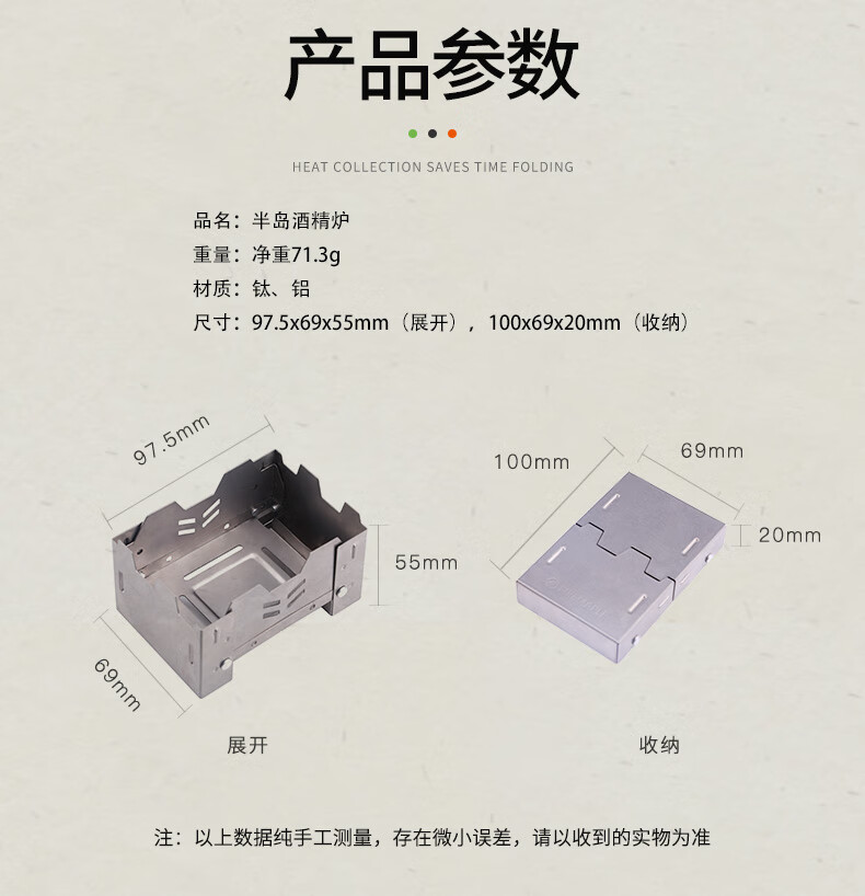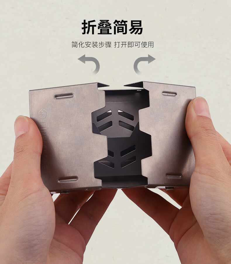 烟盒大小,非常轻便,对户外饮食等活动算是一种有备无患的的补充,对户外运动爱好者更是一个无法避开的小玩具。没有任何用火需求时,展开在茶台上,用于放茶包也是不错的