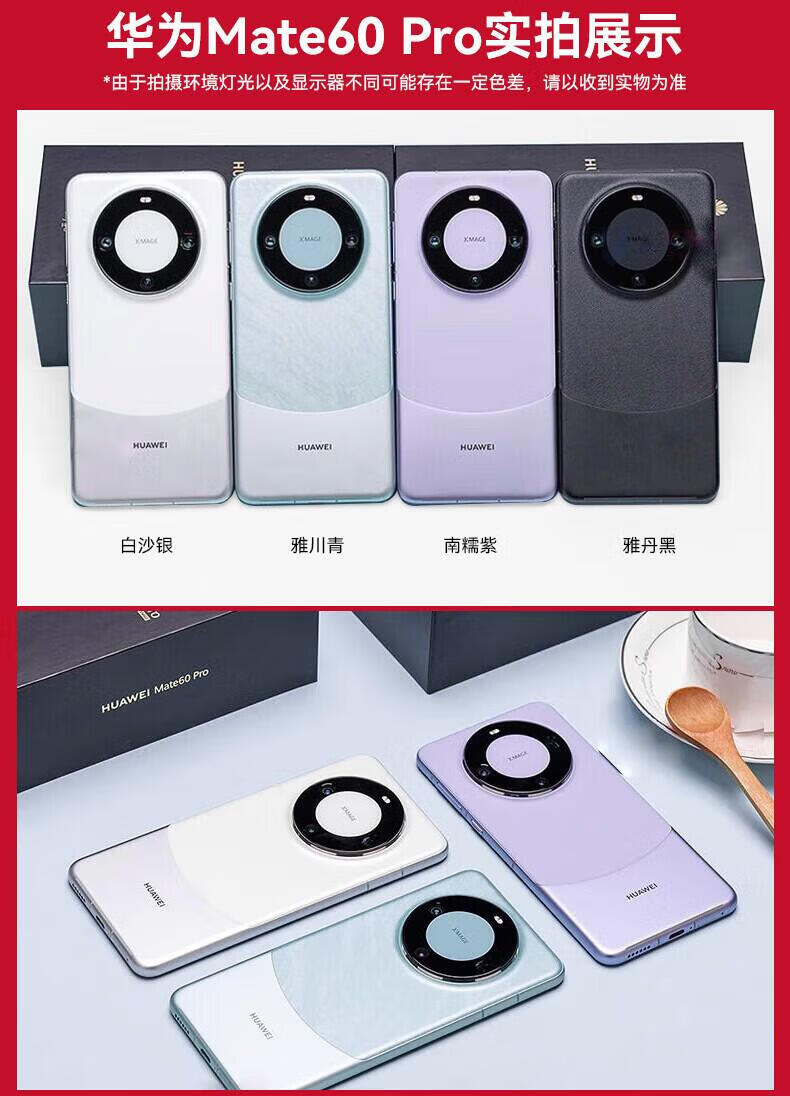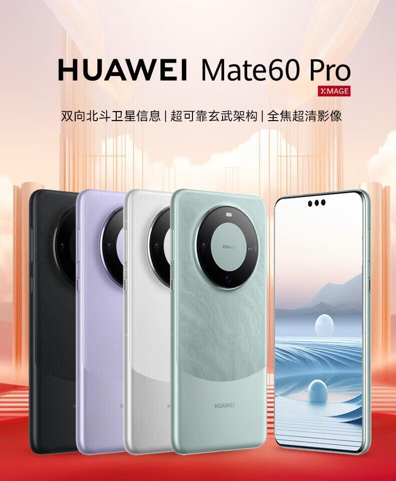 华为手机华为mate60 pro店里补贴 选购24期 免息 70X 双曲护眼屏 五星超耐摔 畅享鸿蒙曲面屏手机 湖光青 512GB 官方标配