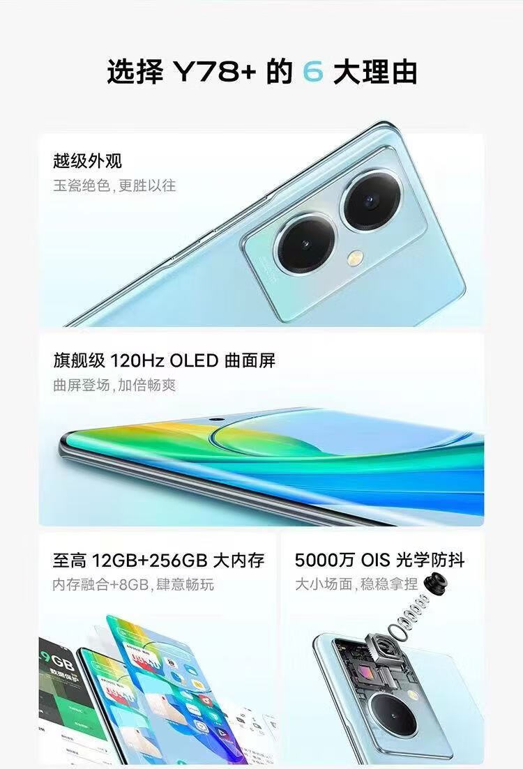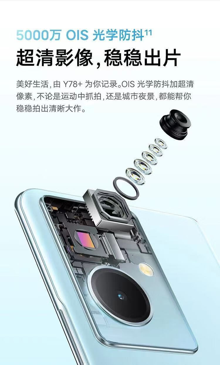 vivo Y78+ OLED曲面屏 电竞游戏 大电池手机 5000万光学防抖 拍照手机 天青色 8GB+256GB 单机+第三方品牌快充+店保一年