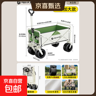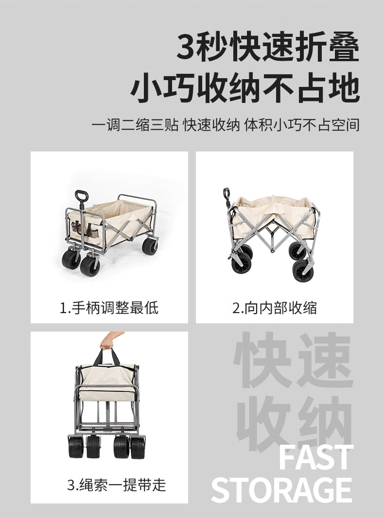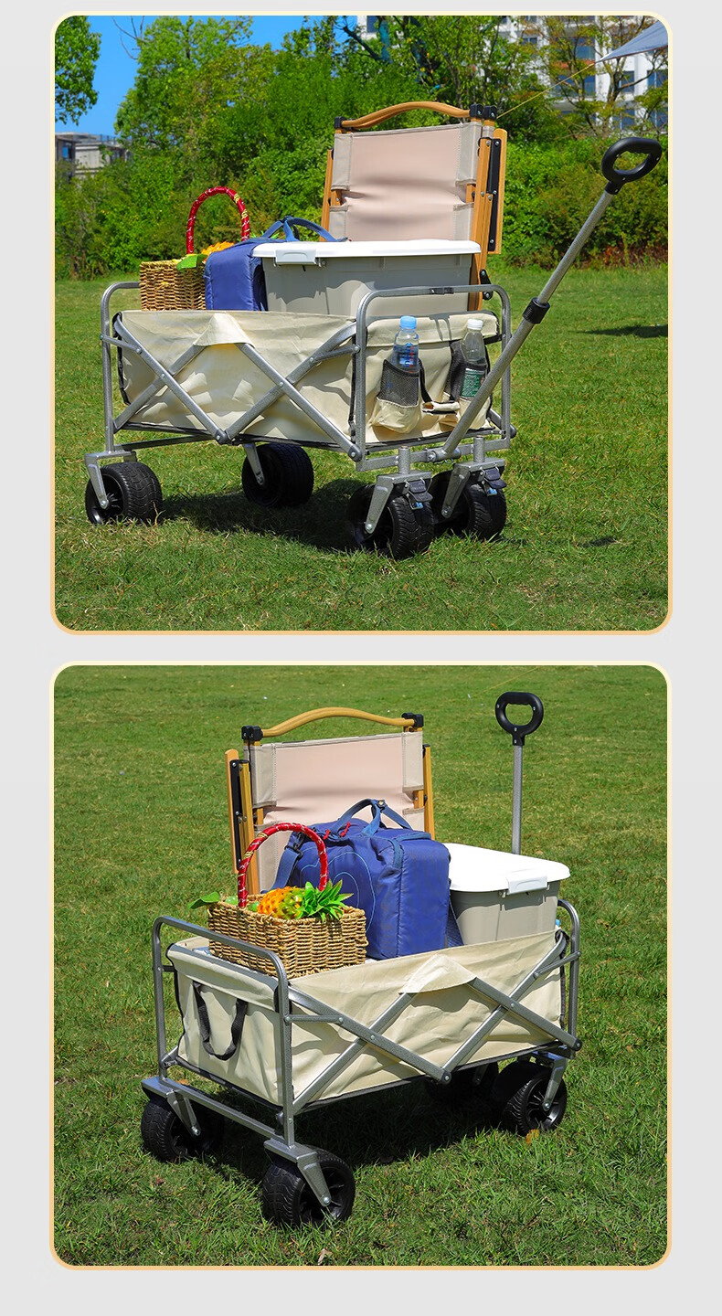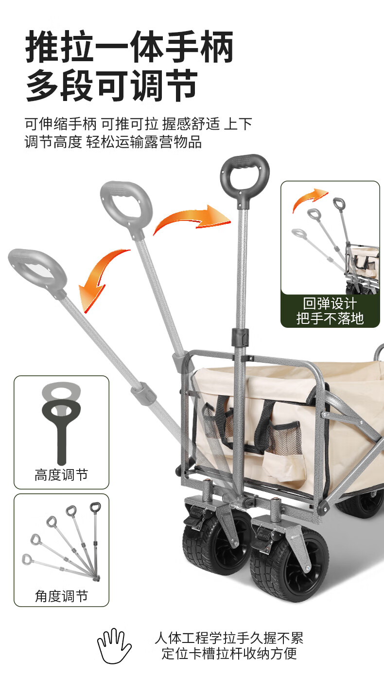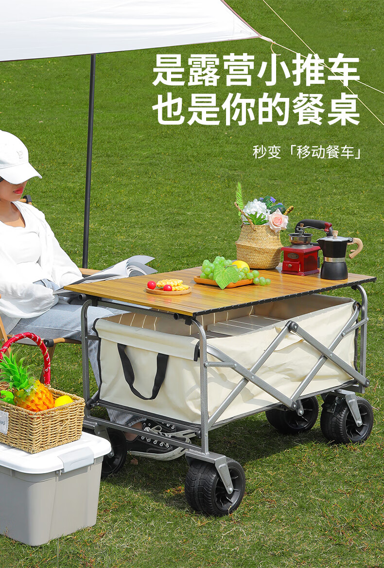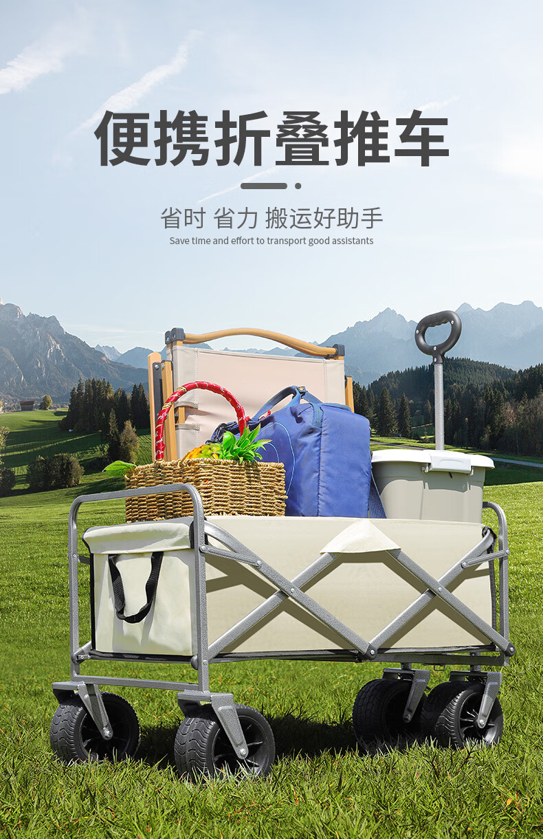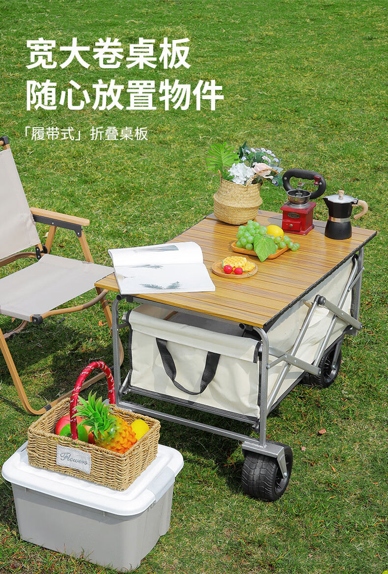 户外露营推车买菜摆摊购物拉杆野营野餐便携式折叠行李拖车露营车 米色 大号坦克轮