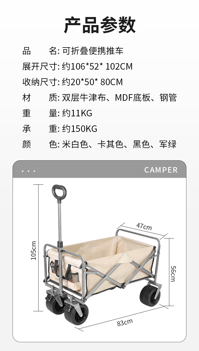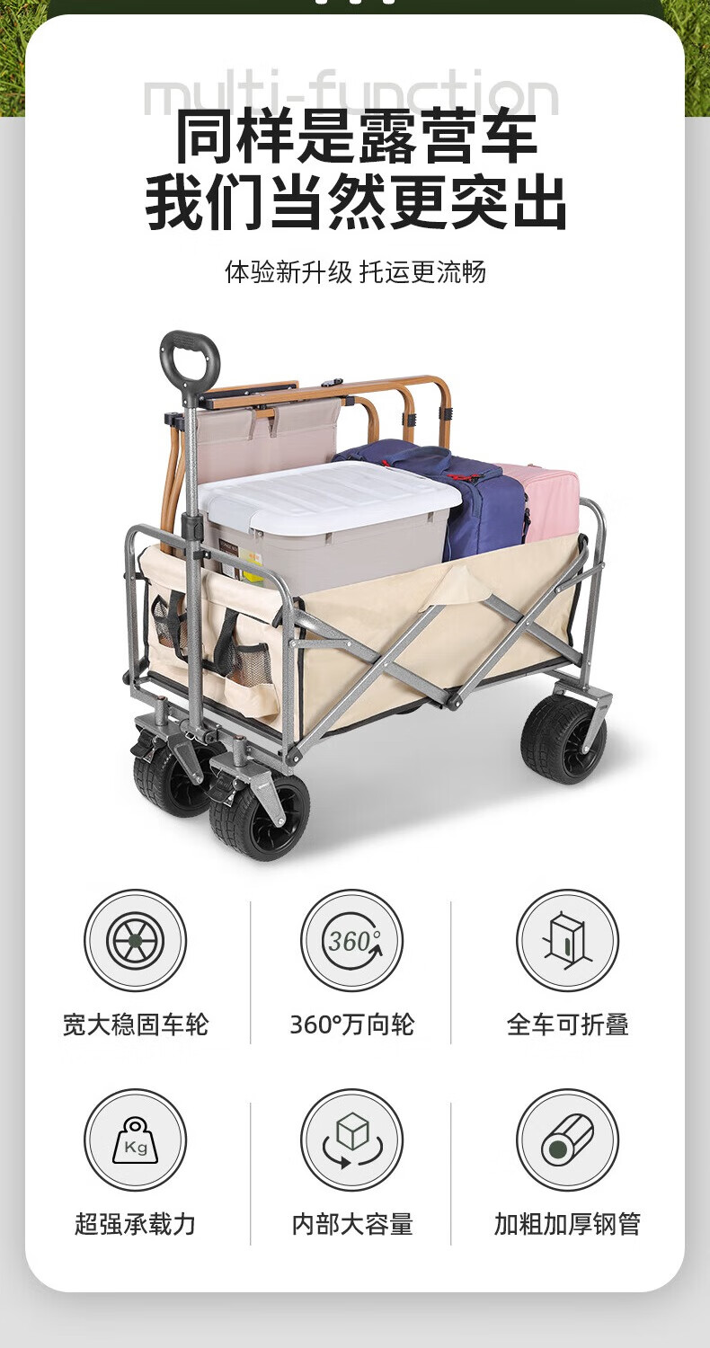 货真价实,这车真是户外探险好帮手!收纳方便,轮子顺滑,拉重物也不费劲。周末露营带上一堆装备,轻松搞定。材质扎实,用了几次都没问题,性价比超高!