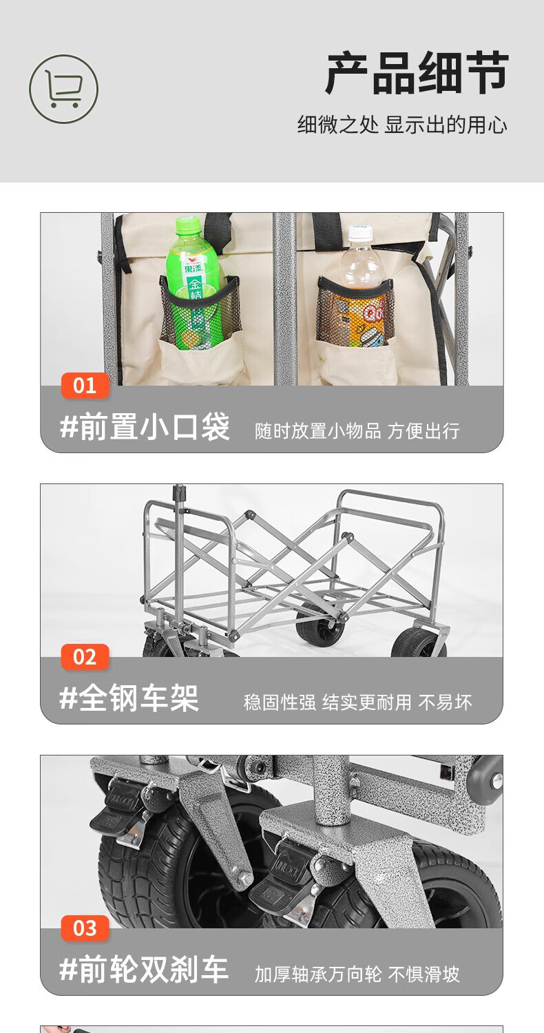 真的很好👍,轮子很大,推起来特别稳,装东西也方便。去野餐或者露营带一堆东西都不费劲,收纳起来也不占地方!