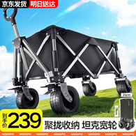 梦多福露营车聚拢款营地户外露营折叠小推车拉货摆摊溜娃 大号款【坦克轮】有刹车 黑色款
