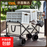 疆屿露营车野营户外折叠手推车野餐摆摊拖斗车儿童可躺超大聚拢营地车 卡其350L聚拢基础拖斗3秒收纳