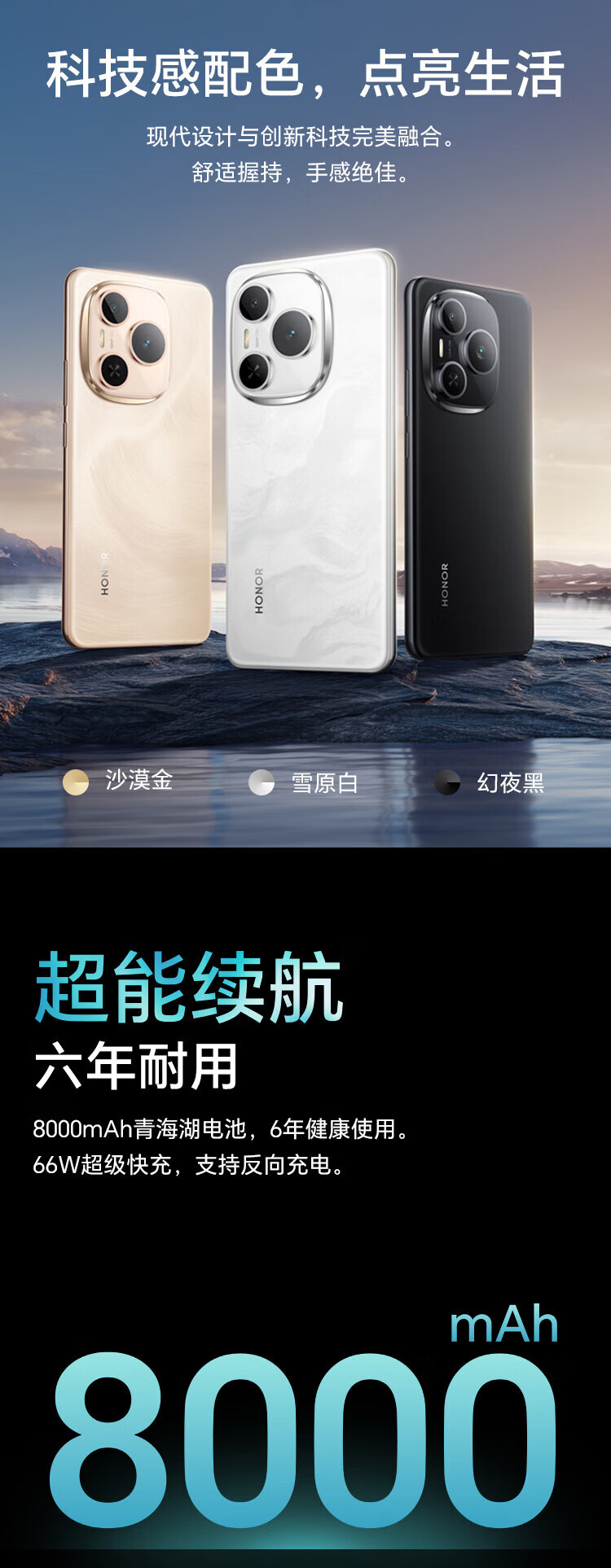 荣耀(HONOR)Power 8000mAh青海湖电池自研C1+通讯芯片 十面抗摔 AI 新品5G手机【白条免息】 幻夜黑 12+256GB 12期免息