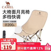 骆驼(CAMEL)户外折叠椅子结实便携式轻露营钓鱼导演凳月亮椅车载休闲躺椅野餐 带脚托可调档高背,赠收纳袋 卡其色3022