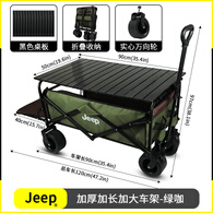 JEEP吉普露营车户外可折叠手推野餐营地超大拖车拉杆摆摊小推车 绿咖色+桌板