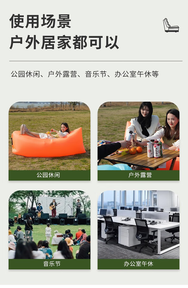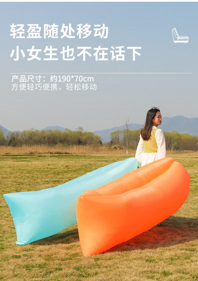 音乐节带这个充气沙发真的绝了!出发前折起来就一小包,塞背包里完全不占地儿,轻飘飘的带着走贼方便。到了现场更爽,跑几下,气儿一下就灌满了,十秒搞定,朋友都看傻了!柠檬黄拍照贼出片,妥妥的草坪C位。