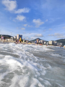 准备周末去沙滩用,还好,一个人一个充气沙发,坐在树下挺凉爽的,看着大海!这个沙发很方便携带
