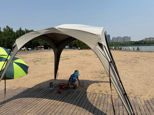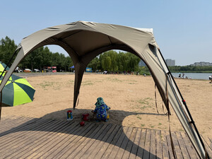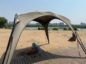 确实够方便,天幕搭建非常简单直觉,包括地垫和门帘,充气床垫也很方便。今天使用了一次,无风,搭建和收纳都简单。 防风绳一开始不会用,研究了一下搞明白了,不过今天其实不需要。 注意下,门帘边边是挂接的,不是全封闭的,所以如果晚上睡里面还是要注意驱蚊的。 大太阳下面,天幕内还是有点热的,门帘装的越多越热,纱窗通风还是有限,大晴天还是不要用门帘好一些。 最后,大就是好。