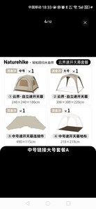 Naturehike挪客云界自立速开天幕露营自动帐篷穹顶钛黑胶遮阳防晒派对大凉亭 四角大号地布/配件