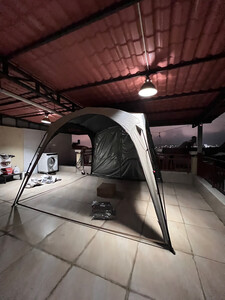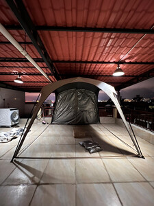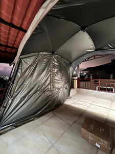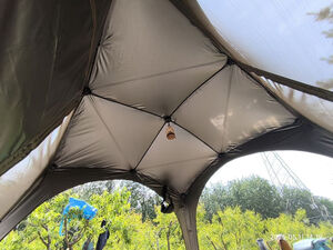 这款穹顶天幕真的很不错,整个安装过程非常的简单,只要把屋顶用力拉起来,再把四个角的撑杆拉到底,卡住以后,基本整个帐篷就搭建起来了,收纳也是非常简单,非常适合野外露营