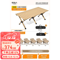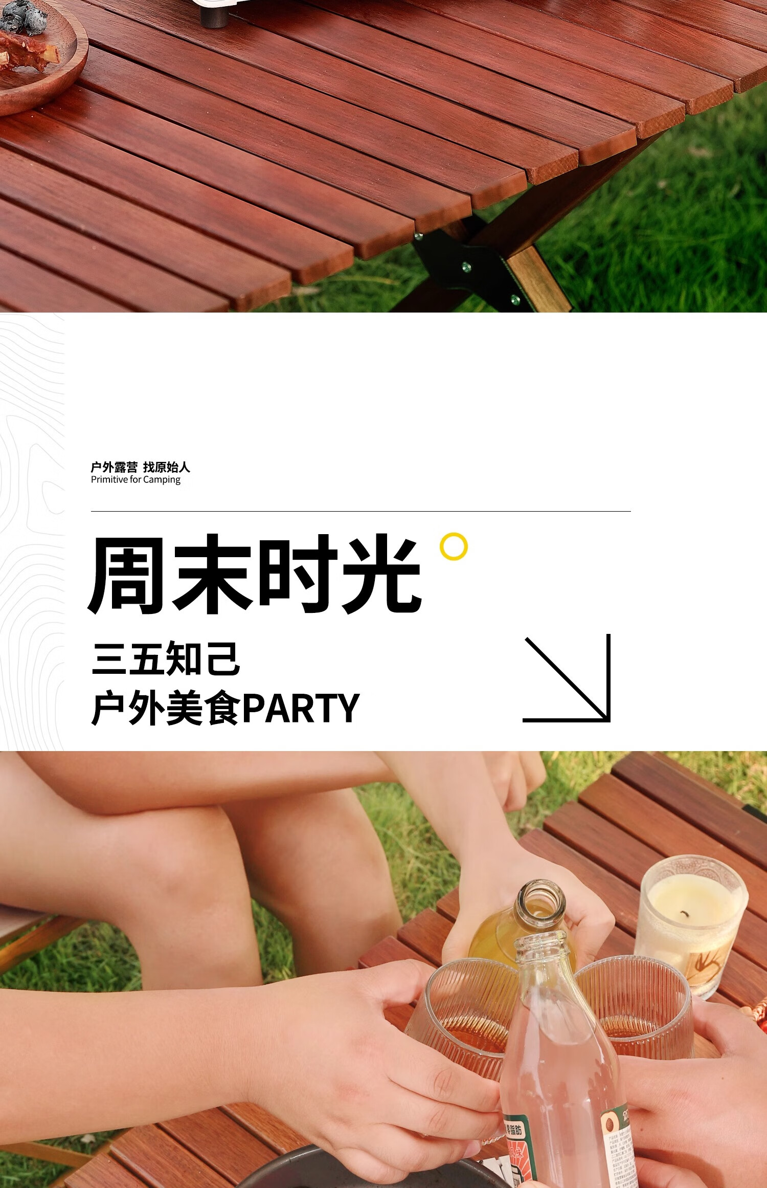 原始人蛋卷桌户外野炊全套装备野餐露营桌椅便携折叠椅子桌子一体 120木色+卡其月亮椅*6