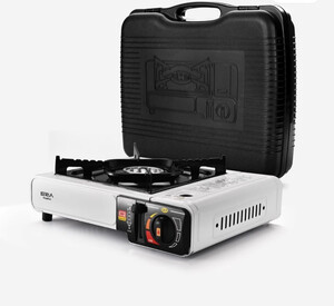 原始人卡式炉户外便携式炉具卡磁炉瓦斯炉露营炊具燃气炉野外煮茶炉 白色【配收纳箱】
