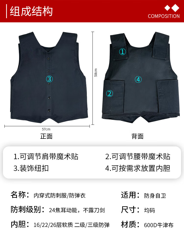 实际穿过几次才来评价。感觉总体设计比较美观,穿戴方便,防刺内芯很厚很结实,穿在身上安全感倍增,而且会让人自然上身挺直(材料比较板,挺直才贴身合身),冬季还有保暖作用。可以方便通过机场安检。赞👍 果断再买个薄款的……