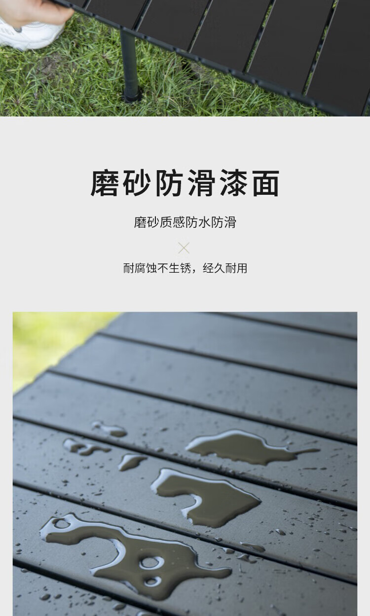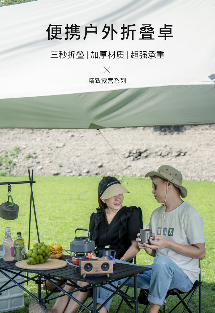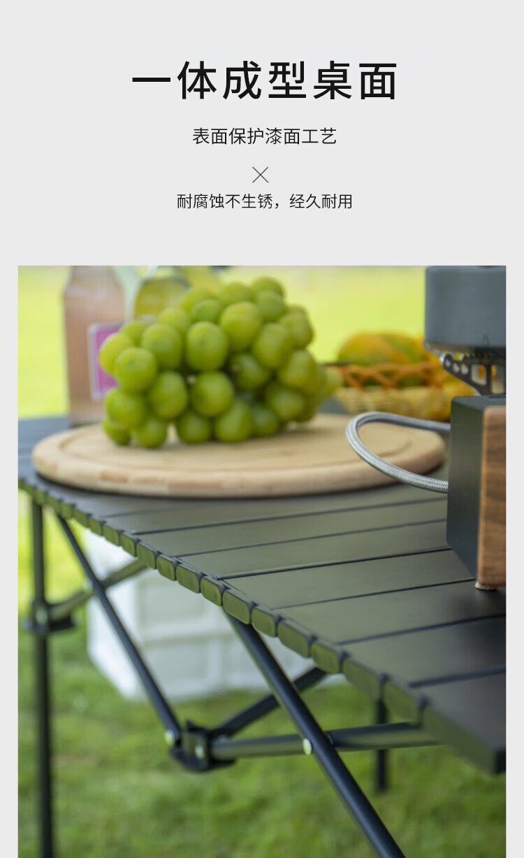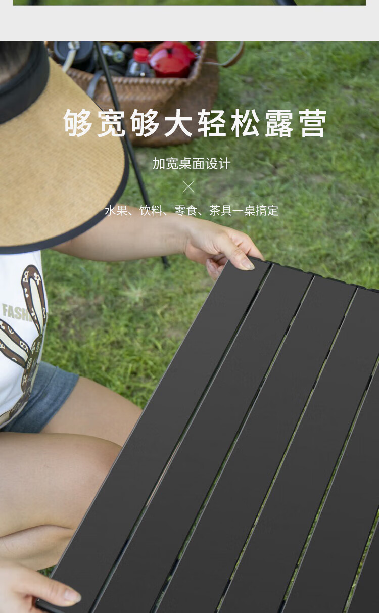 Guide Series户外铝合金折叠桌露营桌便携升降沙滩烧烤桌加宽桌自驾游车载桌 新 加宽金属 木纹黑色