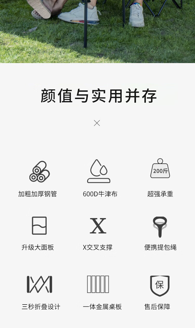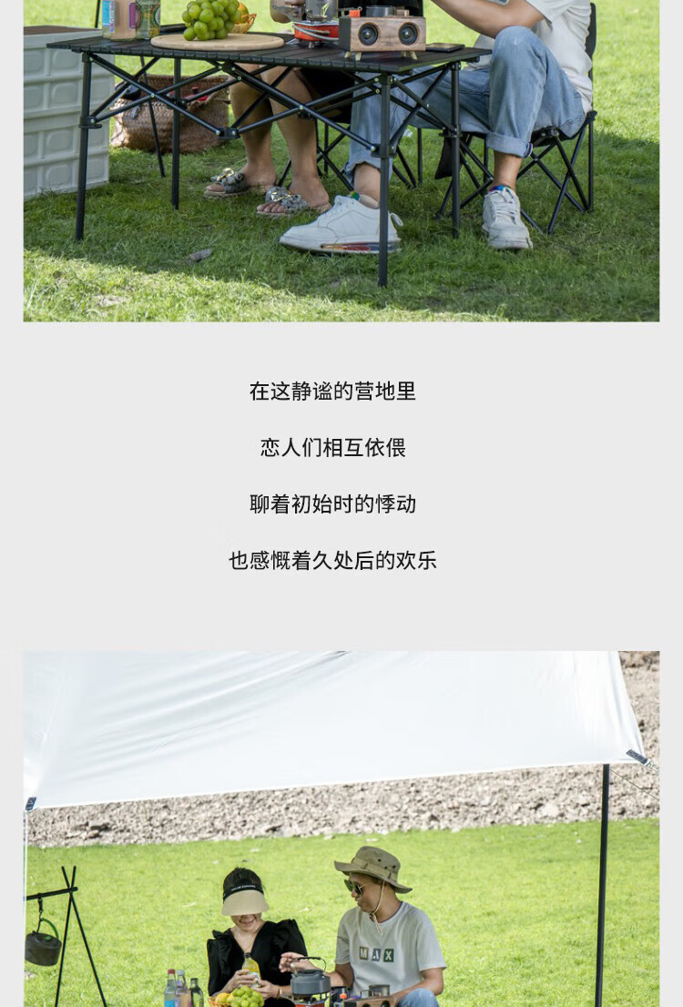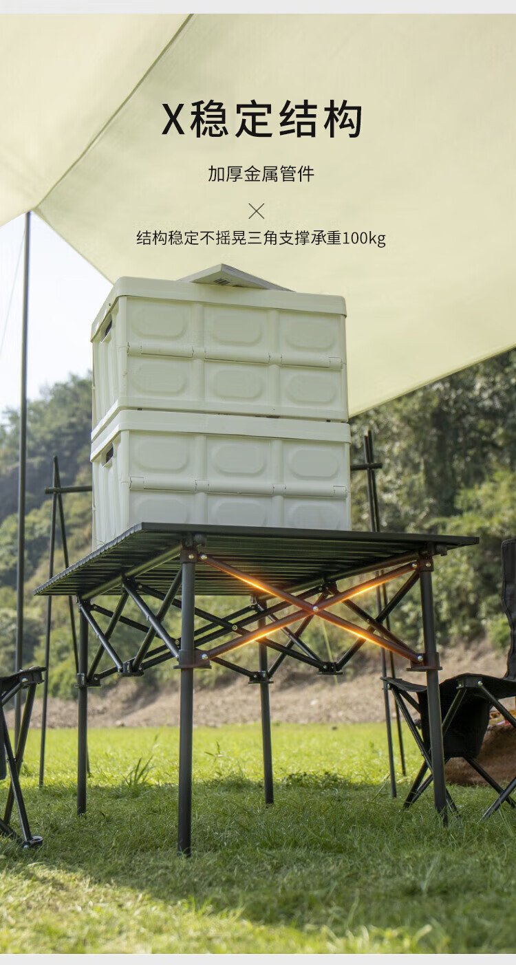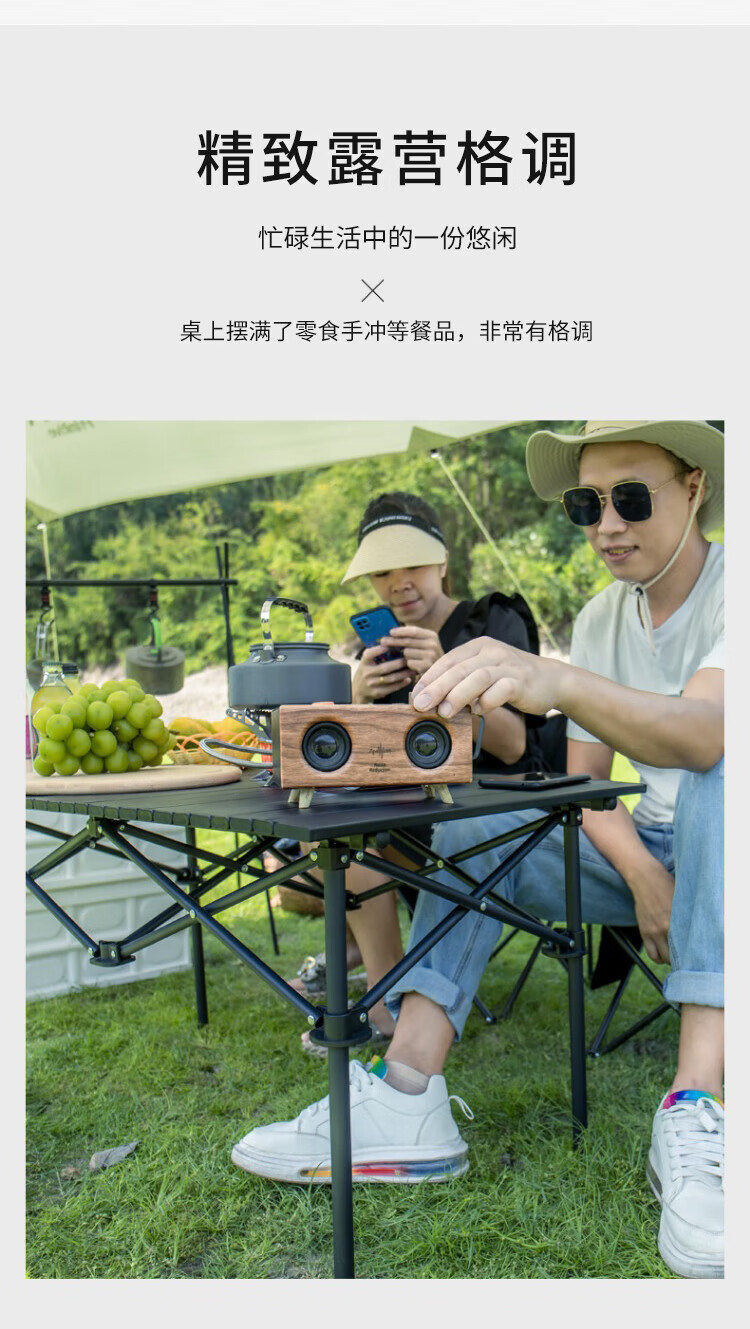 Guide Series户外铝合金折叠桌露营桌便携升降沙滩烧烤桌加宽桌自驾游车载桌 新 加宽金属 木纹黑色