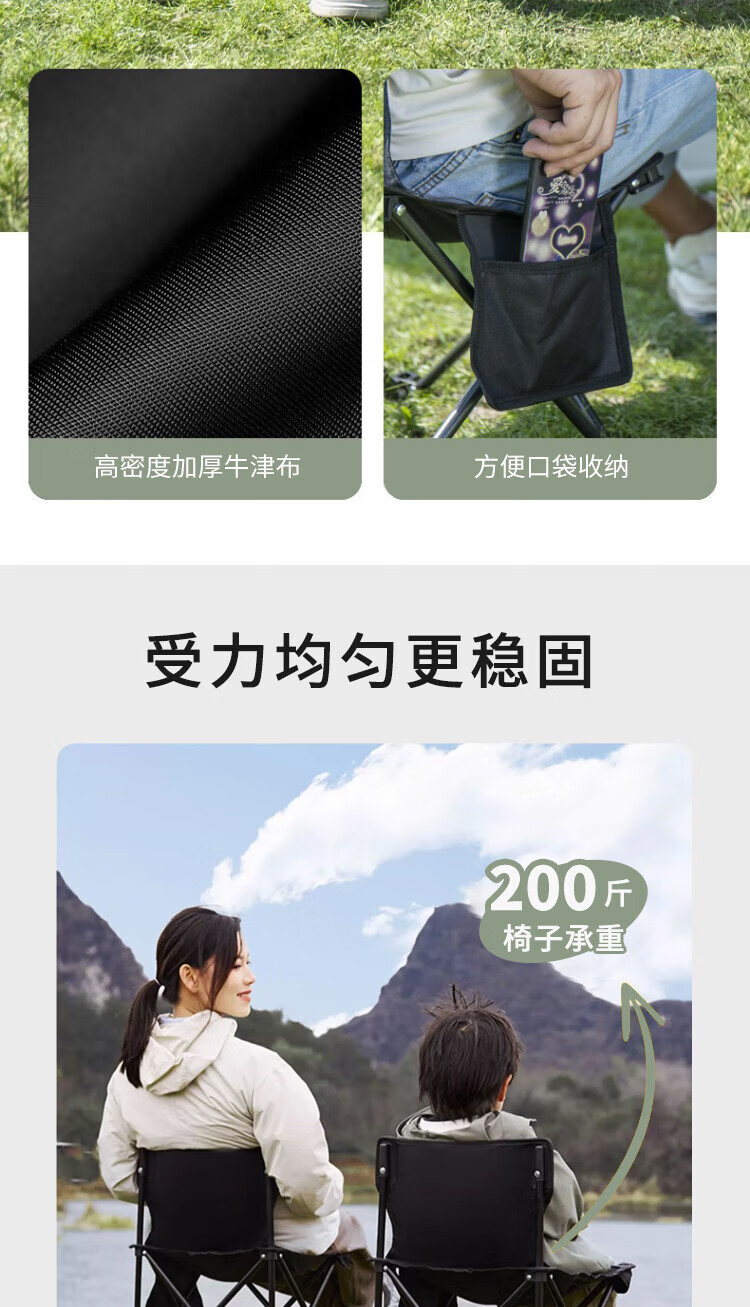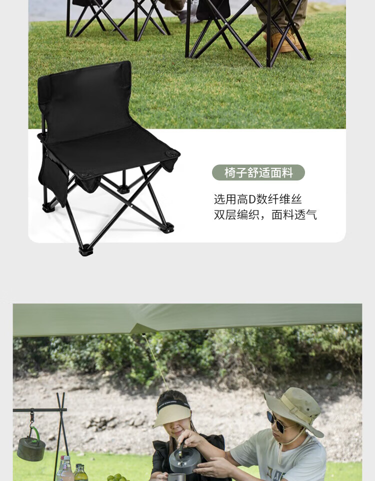 山扉云绮 户外折叠椅全铝合金克米特椅阳台休闲超轻便携式露营椅 黑
