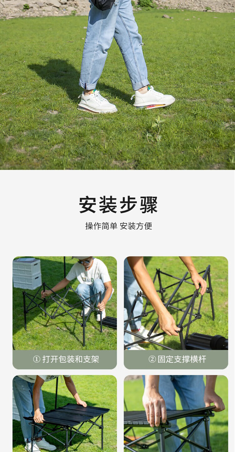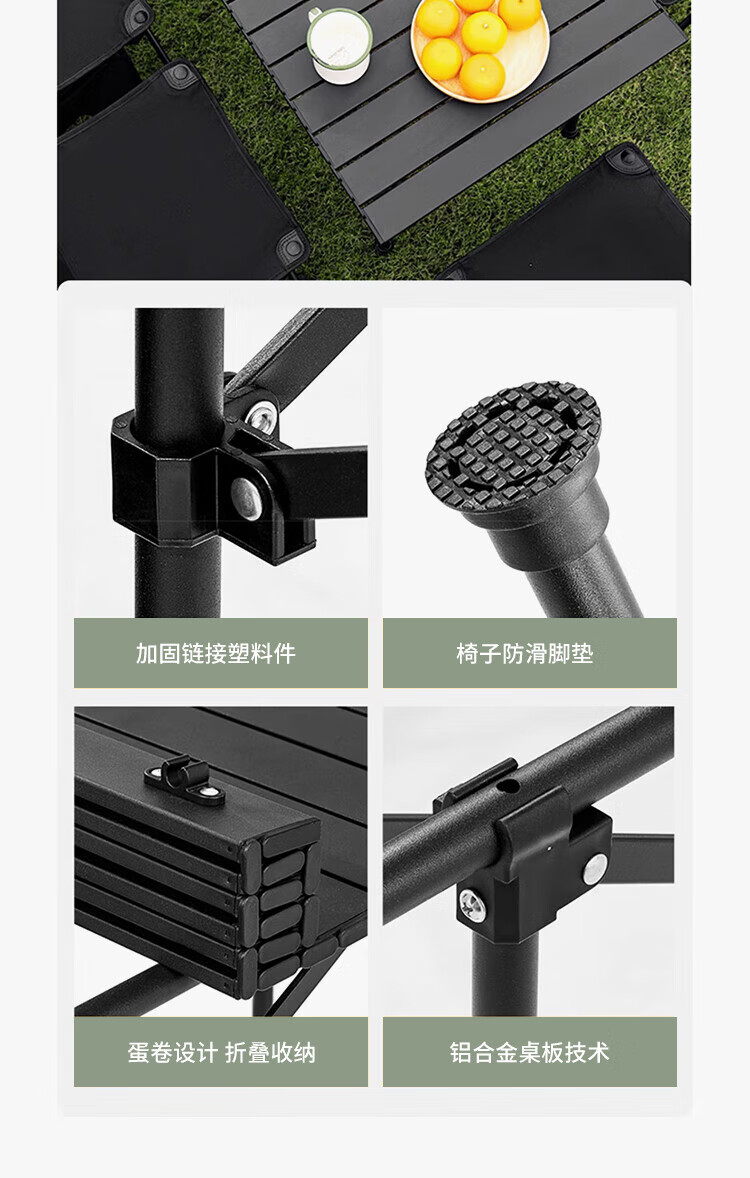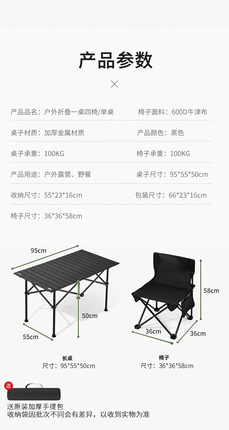 顺优露营桌椅户外折叠桌子蛋卷桌便携野餐装备用品椅子套装野餐桌椅 120cm【长桌+4椅】石墨黑