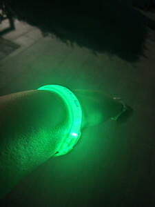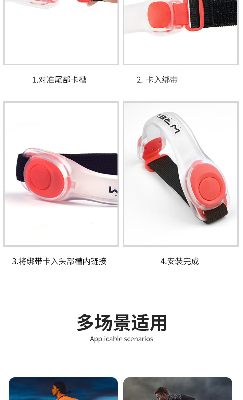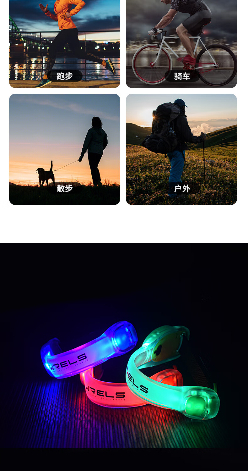 这个手环比较亮,亮度也比较温和。在户外跑步的时候,给自己一份安全的保障,特别是现在夜跑的时候,马路上的人特别多,车子也特别多,特别是外卖小哥的车子非常非常的快不安全。当汽车电动车人行的人行,看到这些真实就会主动避开,确保了确保了跑步的时候人身安全使用了几次,哎,挺不错的