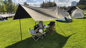 天幕够大,作为新手第一次使用不太好操作,绳子坏了一根,联系客服立马补了一根,目前看来售后还不错。秋冬春季出太阳和朋友野个餐,非常不错