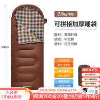 KingCamp户外信封带帽棉睡袋可拼接成人午休加宽加大加厚单双人防寒保暖 【冬季防寒0~4℃连帽】左-咖色