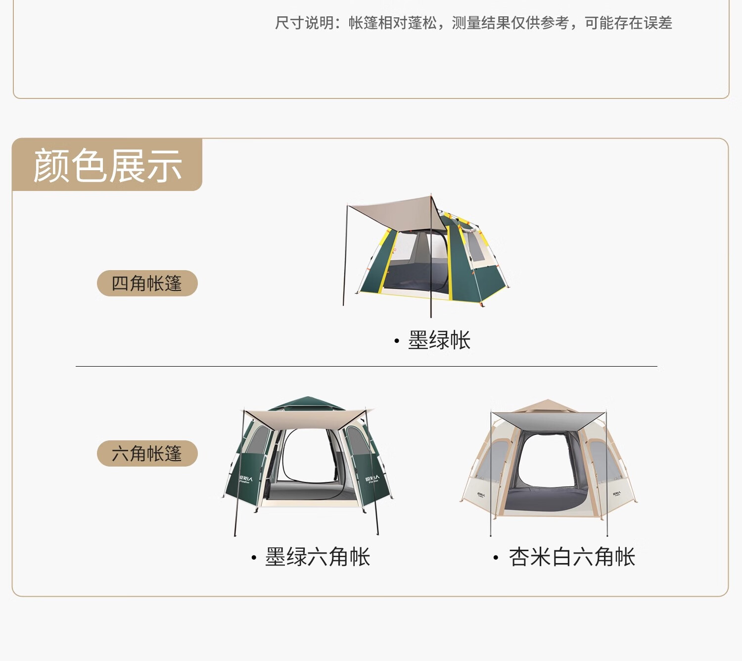 🌟这款帐篷真的太棒了!🏕️外观设计简约大方,颜色搭配也很协调。安装起来非常方便,很快就搞定了✨。使用过程中发现帐篷空间很大,可以容纳多人入住👫。防风效果也很好,晚上睡觉很安心😴。通风设计也非常好,不会感到闷热💨。细节上做得也很到位,拉链顺畅,布料也很厚实耐用💪。总之,这是一次很满意的购物体验,强烈推荐给大家!👍