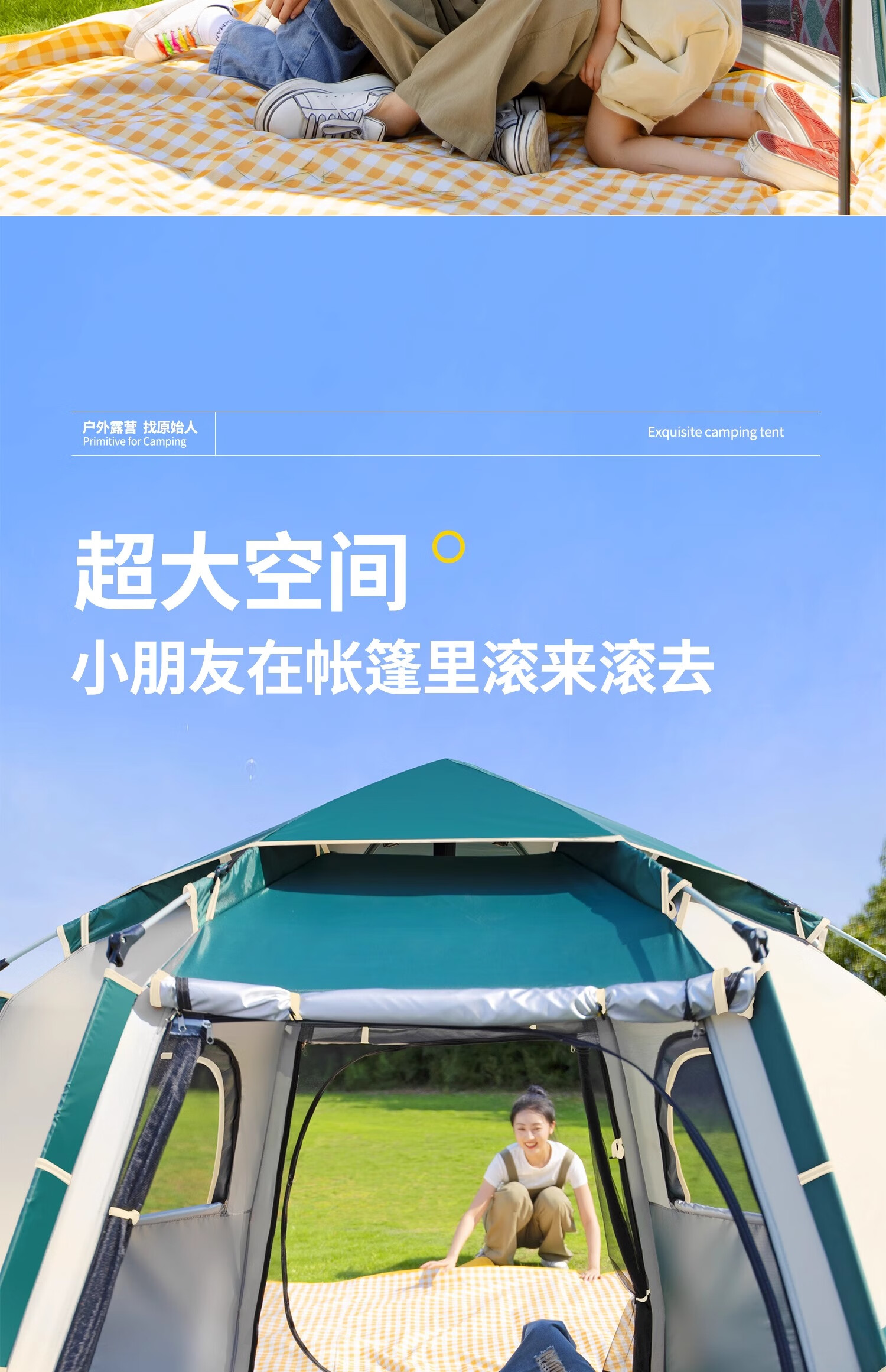 帐篷很大,收纳方便。露营帐篷通常适用于以下场景:家庭度假:家庭成员一起在郊外享受自然,空间较大,能容纳多人休息和活动,方便家庭成员之 公园露营:一些城市公园允许露营,带上露营帐篷,在城市中亲近自然,放松身心。 郊外景区:如山区、森林附近的景区,能提供更贴近自然的住宿体验。 亲子露营:家长带着孩子参与,让孩子接触大自然,增长见识,帐篷成为亲子互动的温馨空间。 总之,露营帐篷是在各种相对较为舒适和安全的户外环境中,为人们提供一个临时的“家”,让人们尽情享受户外生活的乐趣。