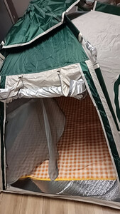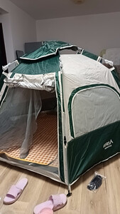 是小朋友一直想要的帐篷!绿色的,一门三窗,三口之家用,我就没有买门厅了,感觉一个帐篷就非常够用啦,如果考虑到跟亲朋好友一起出去,那就得买天幕,到时候再说