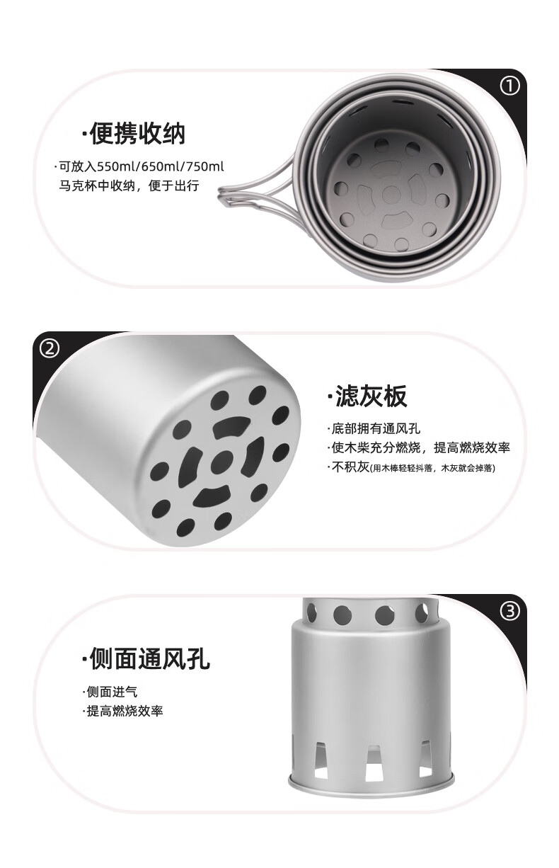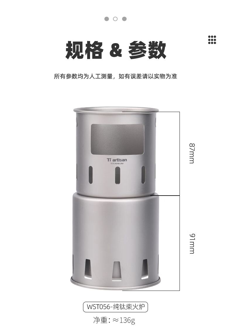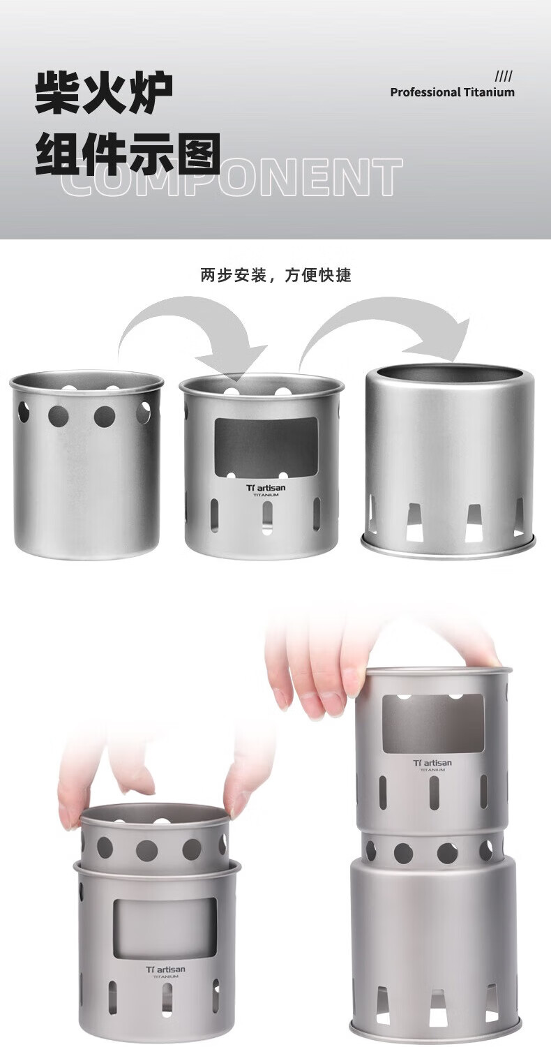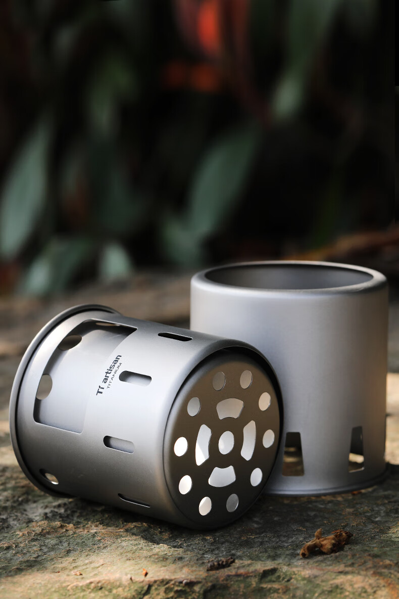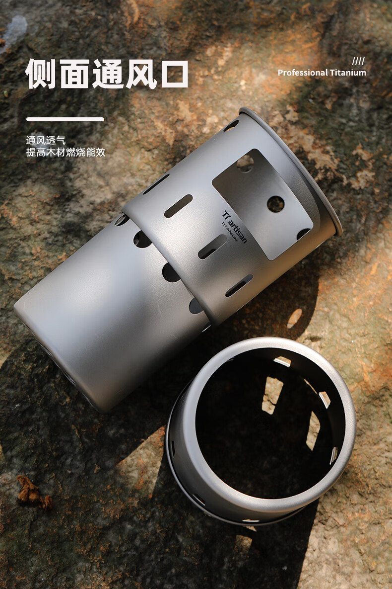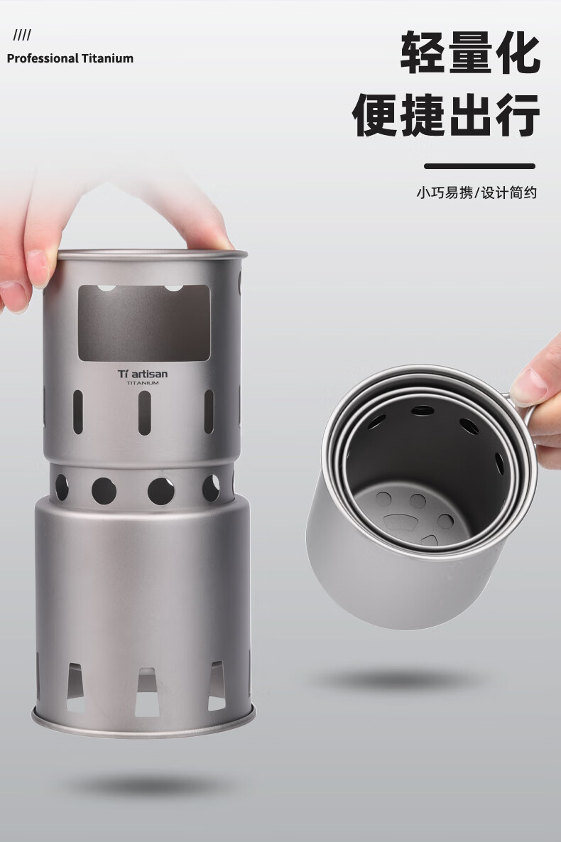 Ti artisan钛工匠户外纯钛柴火炉露营可携式卡片炉直燃炉骑行徒步野营纯钛炉 纯钛柴火炉(两件式)